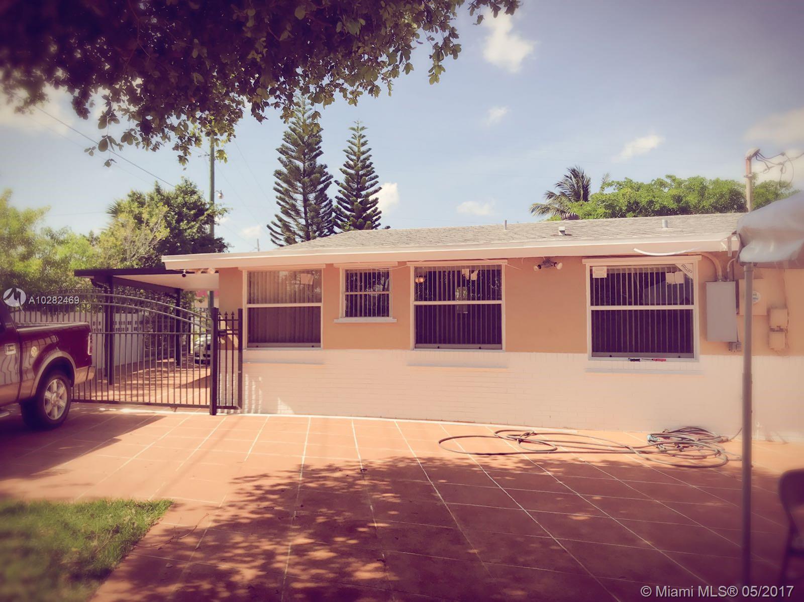4 bedrooms, 3 baths with huge carport with electric gate enough for 4 cars , laminated wood floors throughout, updated kitchen cabinets, stainless steel appliances, updated bathrooms, newer windows, newer A/C, Crown moldings in living room, fenced in back yard and concrete designed pavilion 25x14, lots of room for family gathering and entertainment. 10 yrs old roof, Sprinkle system and hurricane shutters.