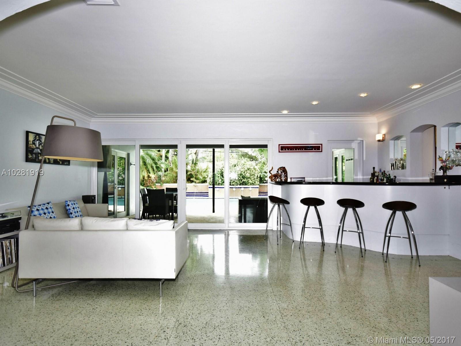 EXQUISITE & FABULOUS 1950'S MIMO STYLE RANCH on a 15,350 SF lot in Miami Shores. THIS SPACIOUS 4,200+ SQFT MIDCENTURY MODERN MASTERPIECE has been beautifully remodeled & features: 5 BD/4.5 BA, high ceilings, wood & terrazzo floors, impact windows & 2 car garage. Gorgeous light filled open living spaces, huge & open eat-it kitchen w/ new appliances, new roof & more! Enjoy the homes private & expansive outdoor living areas,covered patio & magnificent resort style pool surrounded by tropical landscaping.