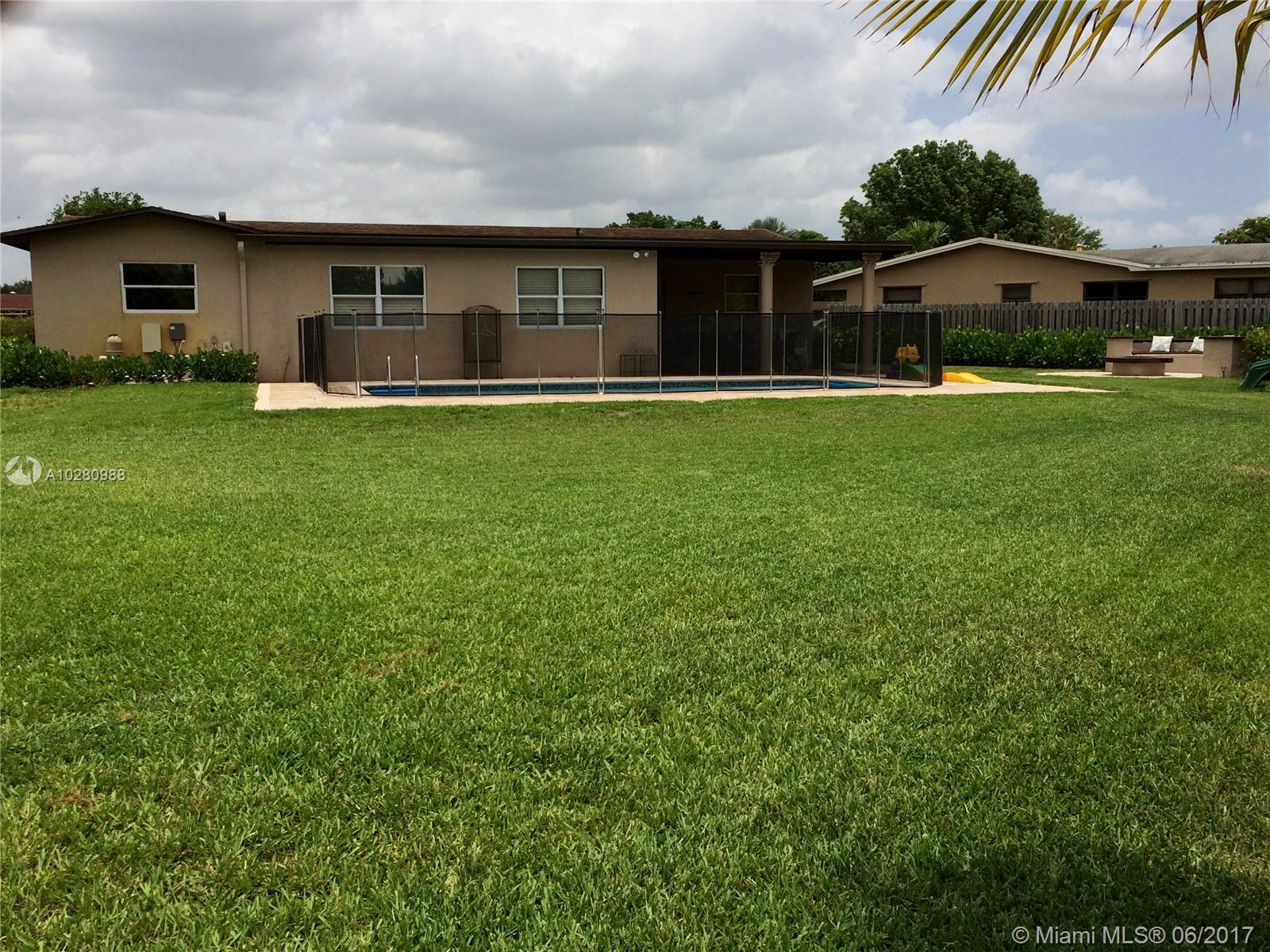 Completely remodeled 4/2-WATER-POOL-1.5 CAR GAR-New redesigned kitchen cabinetry, granite counter tops, SS appliances. Cabana & Master bathrooms feature 24X12 tile, matching vanities/granite tops, new doors, baseboards, hardware etc. One of the largest lots in Pembroke Lakes (15K+ SQ-FT). Very Private large landscaped yard is peaceful & features, custom fire pit, fruit trees, extended paved pool patio decking, fence pool area with new diamond brite, tile, pump, roofed open patio with beautiful columns. New impact rated sliding glass door, front door & garage door. Sculpture shingle roof. Updated windows, New tank less water heater, New AC, Great quiet street and family oriented neighborhood centrally located, excellent school district, close to Parks, Malls, Hospital, Highways & much more.