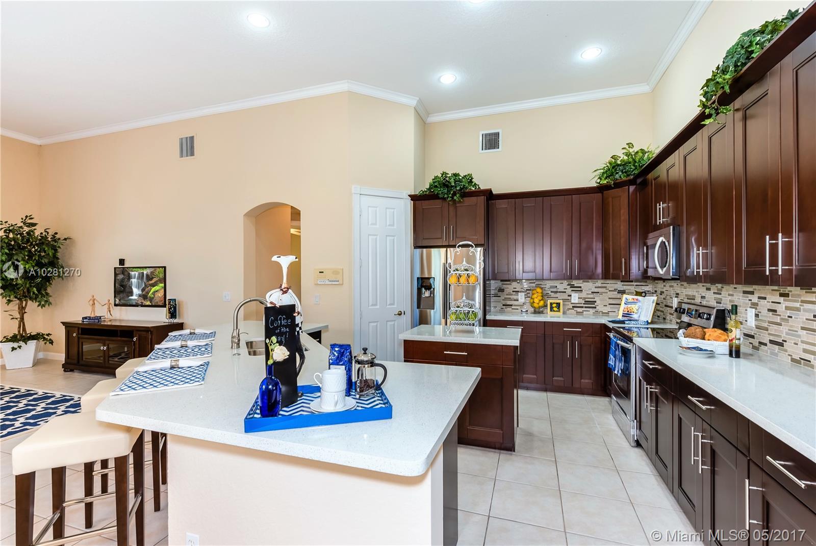 MAGNIFICENT "LENOX" MODEL WITH A NEW OPEN CONCEPT IN SOUGHT AFTER CRYSTAL HARBOUR, FEATURING 4 BEDROOMS PLUS A DEN/OFFICE AND 3 FULL BATHS * RENOVATED KITCHEN WITH QUARTZ COUNTER TOPS, WOOD CABINETS AND BRAND NEW STAINLESS STEEL APPLIANCES * ACCORDION SHUTTERS THROUGHOUT ** STYLISH RENOVATED BATHROOMS ** BRAND NEW WASHER AND DRYER ** NEUTRAL TILE FLOORING THROUGHOUT MAIN LIVING AREA AND WOOD FLOORING IN ALL BEDROOMS * LARGE LOT WITH PLENTY OF ROOM FOR A POOL * "EVERYTHING YOU NEED" GATE COMMUNITY WITH AMAZING RESORT STYLE CLUBHOUSE * HOA INCLUDES CABLE, INTERNET, ALARM AND MORE * CALL TODAY!!!