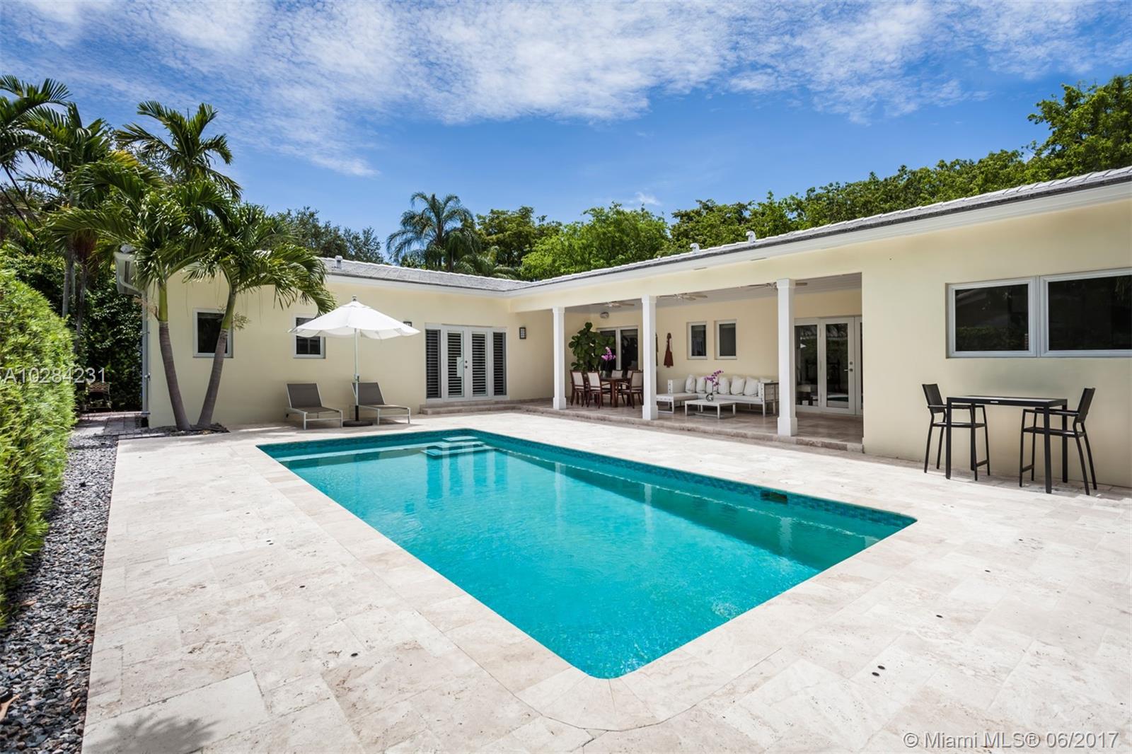 Located in Coral Gables near Old Cutler Road, this 4 BR/4 BA home has been beautifully renovated. French doors and spacious layout contribute to the bright nature of the home. The gourmet Mia Cucina kitchen features Scavolini cabinetry, mosaic tile backsplash, porcelain tile floors and top-of-the-line appliances. Gorgeous wood floors are used throughout the homes living spaces and bedrooms. In addition to a living, dining and family room, the home also has an office. The master suite has his-and-hers walk-in closets with built-ins and French doors that open to the backyard. Great for entertaining, the wood paneled covered patio with ceiling fans and speakers overlooks the heated saltwater pool. 4th bedroom has been converted to an office.