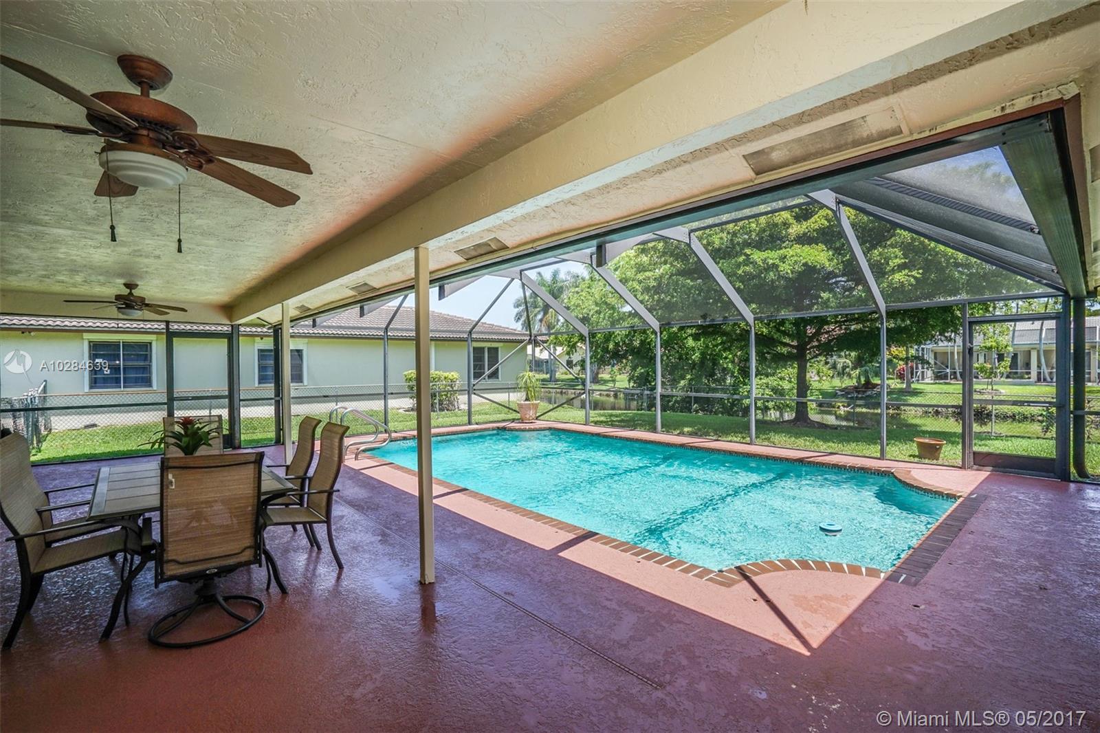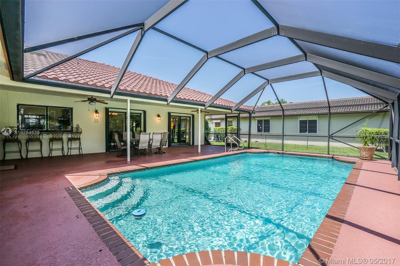 SPEND THE HOT SUMMER DAYS RELAXING IN THE COOL BLUE SPARKLING POOL WATERS INSIDE THE LARGE SCREEN IN PORCH WHICH OVERLOOKS A TRANQUIL WATERWAY. YOU WILL LOVE TO ENTERTAIN IN THE LARGE OPEN AND UPDATED KITCHEN WHICH ALLOWS FOR INDOOR/OUTDOOR LIVING. YOU WILL FALL IN LOVE WITH HOW LIGHT AND BRIGHT THE HOME IS. THE SPLIT FLOOR PLAN COUPLED WITH THIS HOME BEING LOCATED ON AN OVERSIZED CORNER LOT IN ONE OF THE BEST SCHOOL DISTRICTS IN CORAL SPRINGS MAKES THIS HOME IDEAL FOR A GROWING FAMILY. THE DRIVEWAY IS LARGE ENOUGH FOR AT LEAST SIX CARS. ROOF (2006), A/C (2007), ACCORDION SHUTTERS (2007), HOT WATER HEATER (2015). CLOSE TO FABULOUS RESTAURANTS, SHOPPING, AND MAJOR HIGHWAYS! MUST SEE!