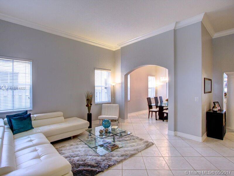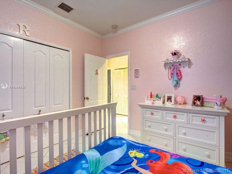 Beautiful cozy 1 story home. This home offers a great open floor plan with high ceilings. 5 bedrooms, 3 full bathrooms, 3 car garage. Lap pool with water cascade. Renovated kitchen with newer appliances. Master bedroom with custom built walk-in closets, new High Efficency A/C. All walls have mid outlets for flat screen TVs. Hurricane shutters. Home is located one light away from the highway. Walking distance from schools...