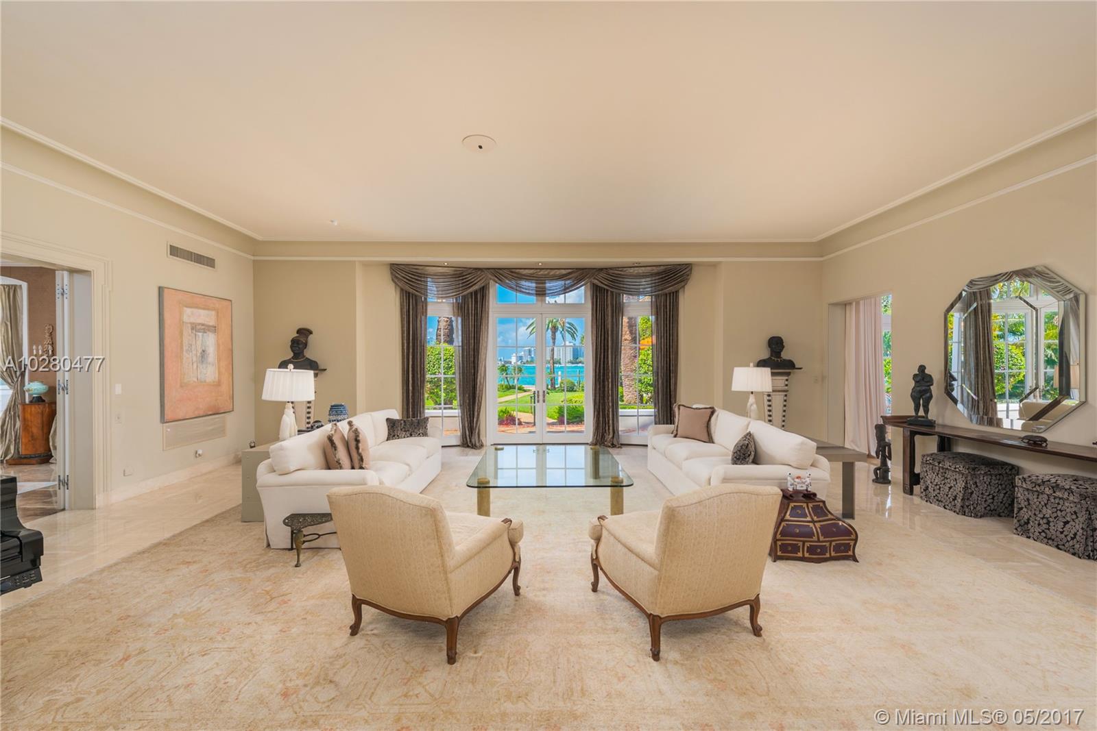 A rare opportunity to own this unique 1.85 acre estate on the prestigious Star Island, on the market for the first time in 44 years! This premiere estate situated on the most sought after north side of Star Island offers unparalleled unobstructed wide open water views of Biscayne Bay. This grand 7 BD,7.5 BA residence is located on a spectacular 80,664 SF lot, boasting 327 feet of waterfrontage. Take in sweeping ocean breezes from the East throughout the expansive grounds, in the sparkling pool, or out on the lighted tennis court. Enjoy living in one of 34 homes on this elite and exclusive island paradise.