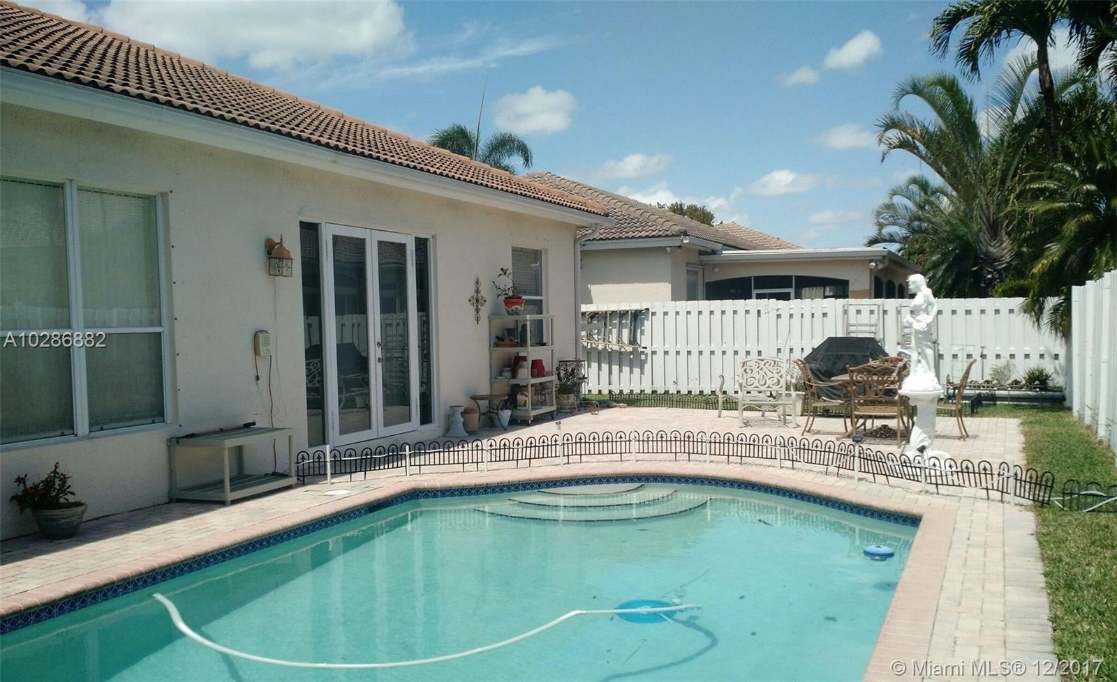 HOUSE OF TEN-PALMS Thanks! This naturally bright and open 3 bedroom 2 bath pool home, is pet and family friendly; located in desirable Ft Lauderdale-Hollywood OAKRIDGE suburb. Built on an over-sized corner lot at the end of the street with lots of green space and walking path. This OAK model A, features open architectural details, 10 ft. ceilings and brick-paved backyard. Tucked away in a gated community with playground, tennis and basketball courts. It is centrally and conveniently located: just 15 minutes to the beach, 10 minutes to the airport! Priced to sell! CALL today to schedule a showing. Thanks you..