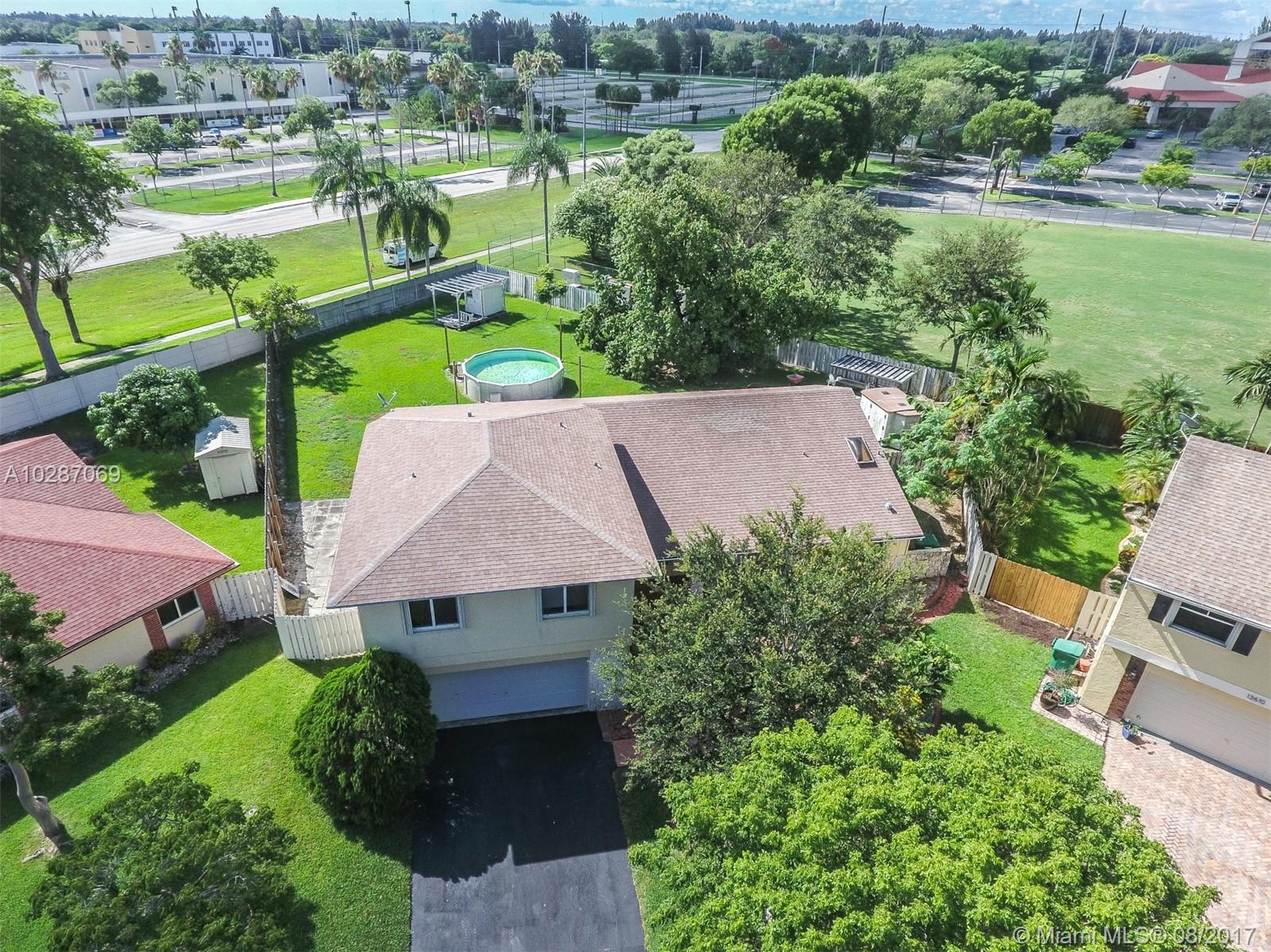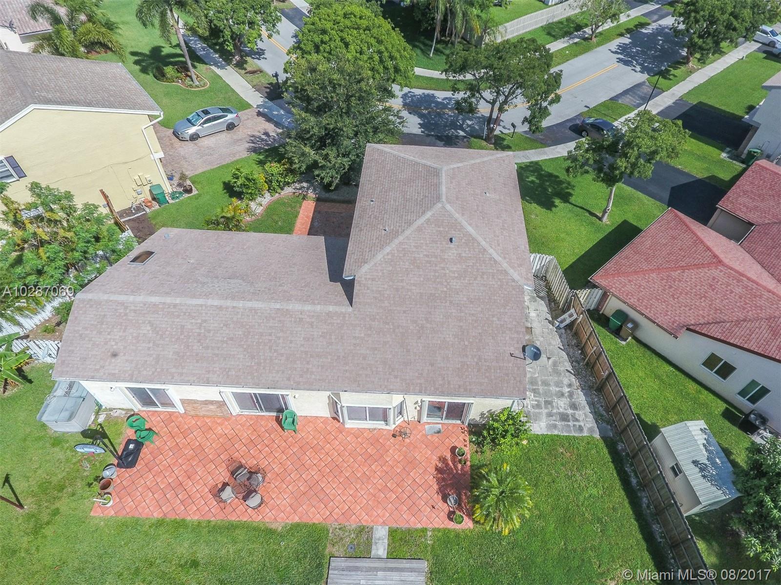 Come see a amazing two story home on a large corner lot. The lot is one of the biggest in community. Back yard completely fenced in with above ground pool with wood deck with several storage sheds and large 15x50 tiled patio floor.Front of house has tile porch with walkway and water fountain with real coral rock accents along front of house columns.House has new windows and doors with accordion hurricane shutters on 1st and second floor. House features inside large tile thru out with high vaulted ceilings with very open Living room and dinning and large Family room off kitchen. Kitchen has custom made cabinets and counter tops and features a large bay window with seating and storage.Master bedroom has new laminate wood floors and remodeled master bath with large shower with double shower