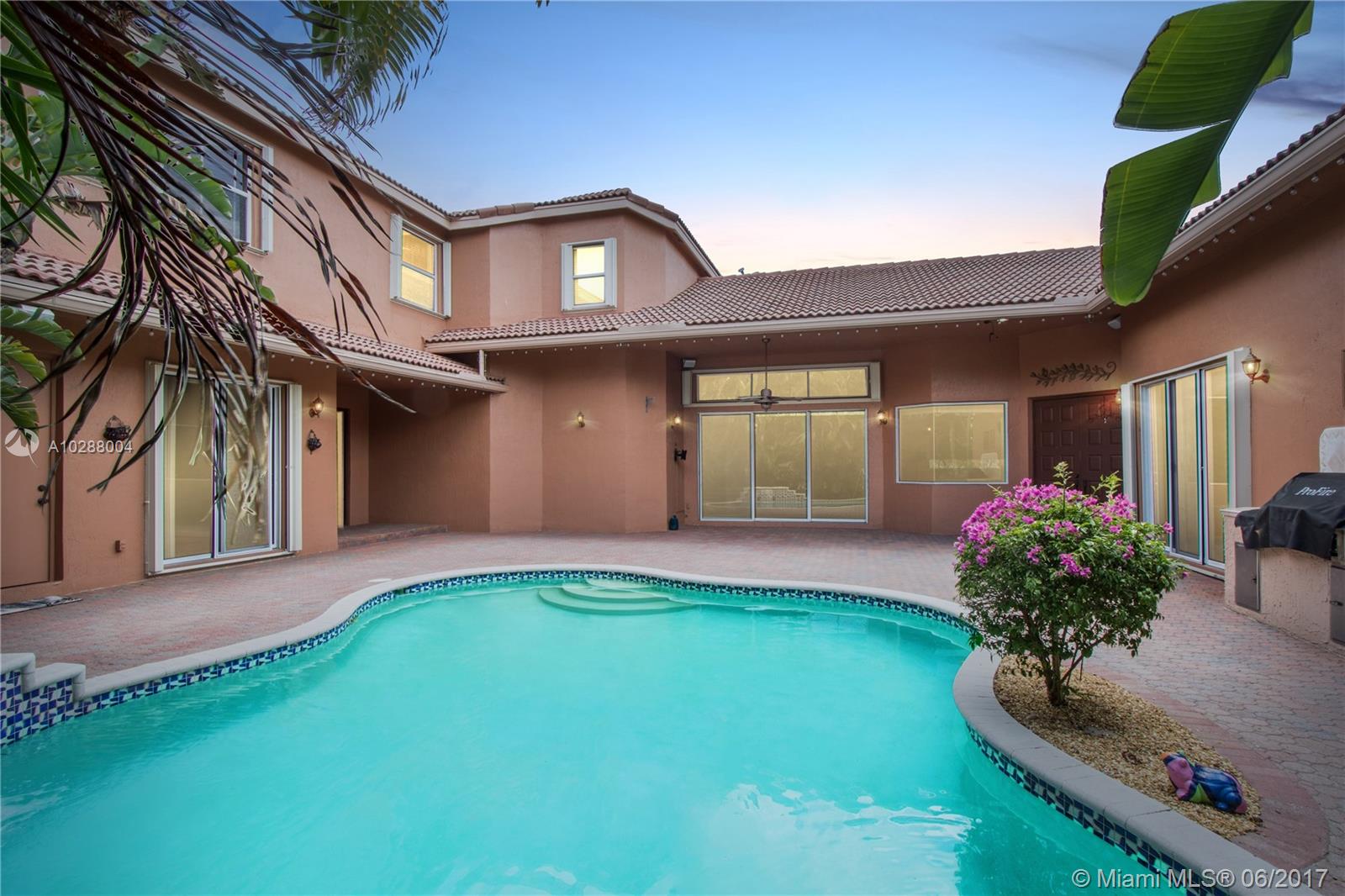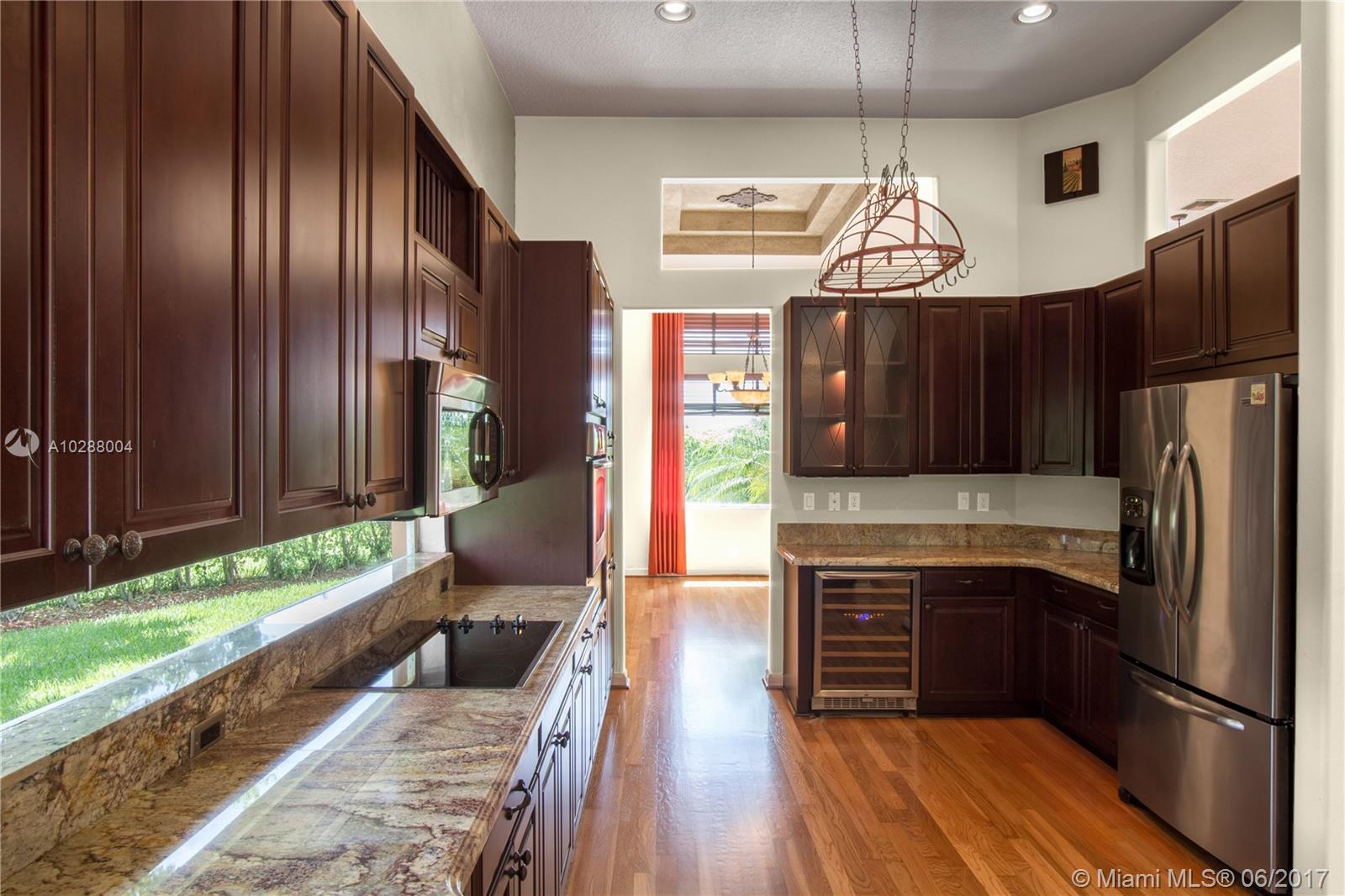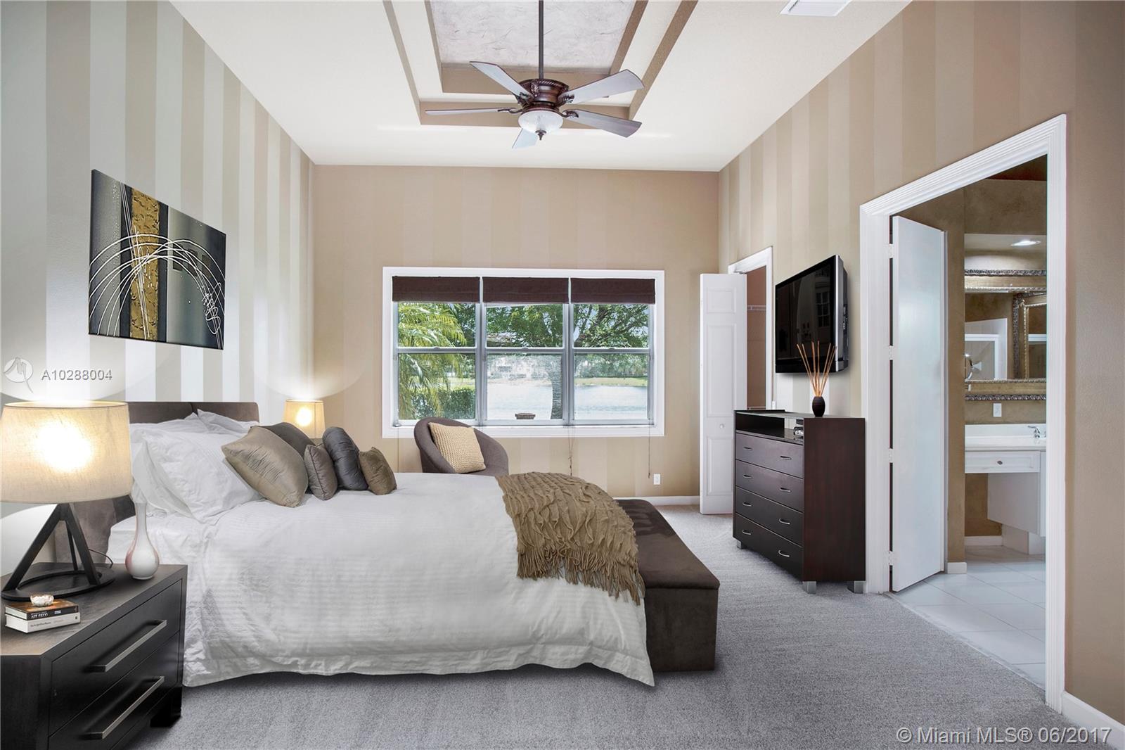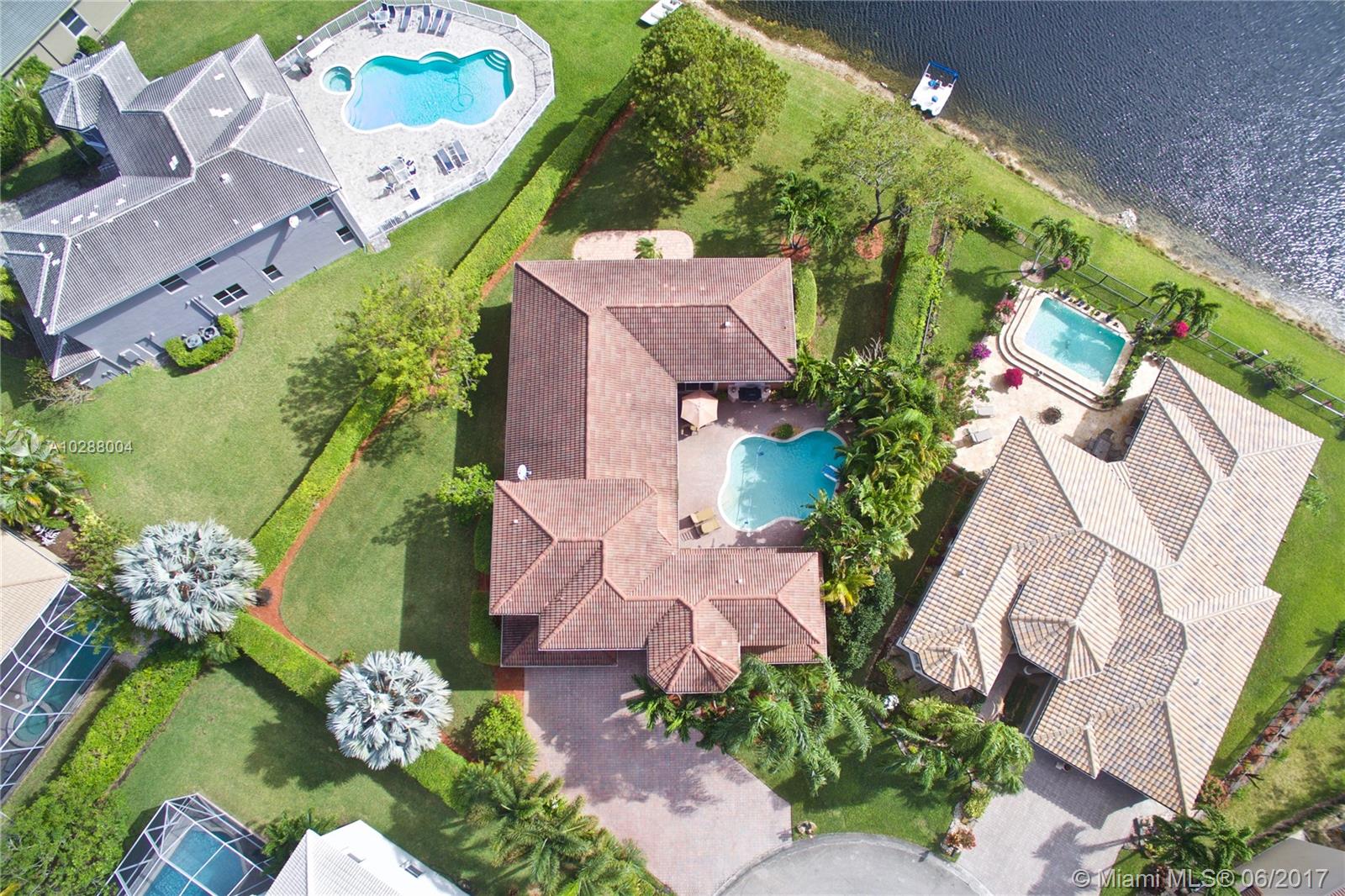 STUNNING TROPICAL POOL HOME ON HUGE DEEP WIDE WATER FISHING LAKE! This Rare Waterfront Courtyard Style Home Has a Separate In-law Suite. Master on 1st floor with Brand New Plush Carpeting. 3 bedrooms on 2nd floor PLUS a bonus room, great for a den, office or kids play room. Brand New Wood Flooring Throughout Living Areas, Upgraded Kitchen Cabinets with Counters Covered in Thick Slab Granite. Stainless Steel Appliances, and Custom Built-in Wine Cooler. Kitchen boasts large eat-in, & opens up to the family room which overlooks the grand 1500+ Sq Ft courtyard. The private pool is surrounded by tropical foliage offering that true South Florida paradise feel. Built in BBQ. Perfect home for entertaining! Excellent schools, private man-gated community, & home on cul-de-sac.