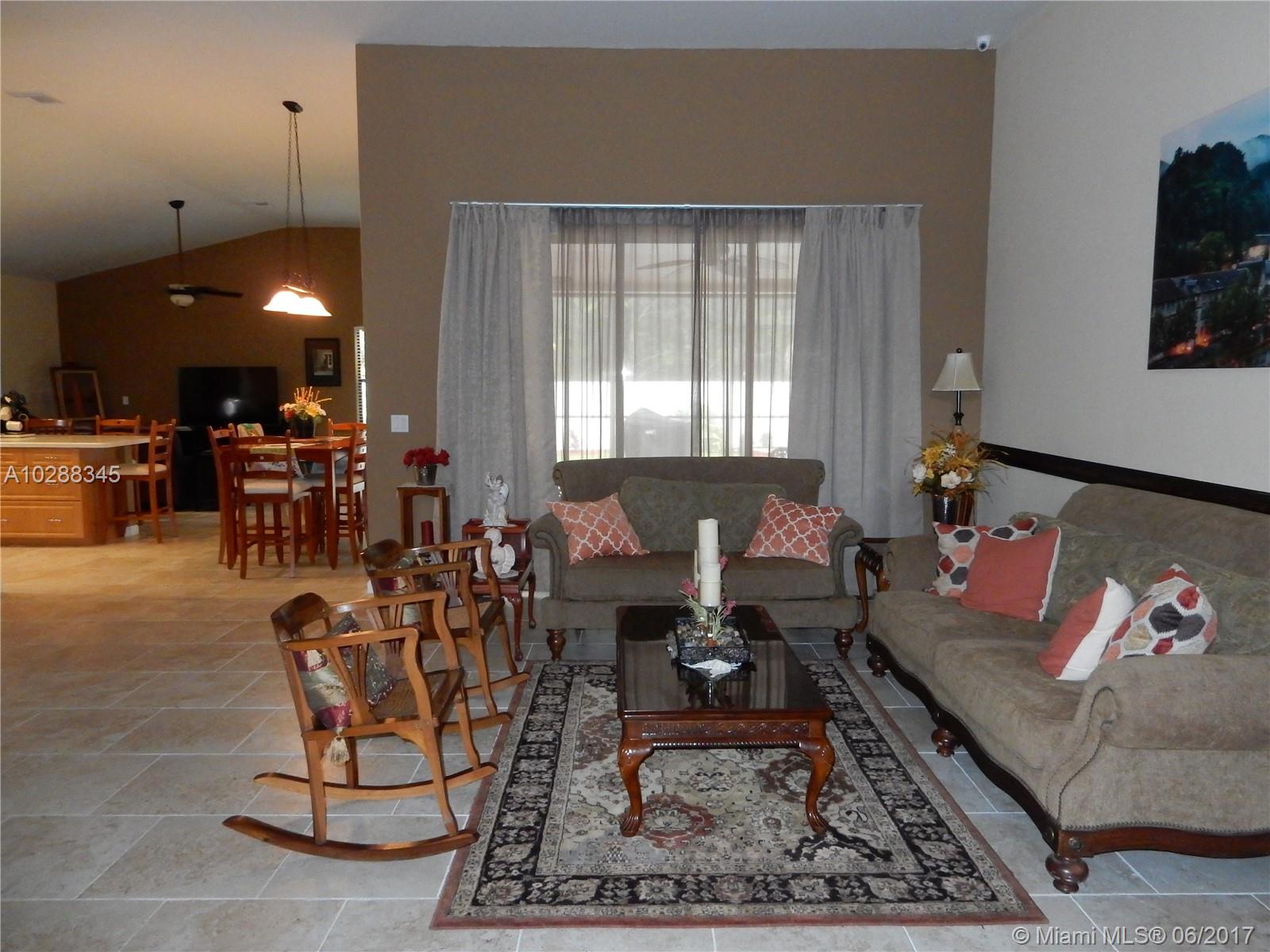 Great opportunity to live in a spacious open floor plan in great man gated community. This well maintained home features vaulted ceilings, open kitchen/family room area with breakfast nook overlooking large screened pool/patio & total park like setting of preserves behind privacy wall. Large living room, formal dining room and 4 spacious bedrooms make this home located on a great private street one that you will want to see. This grandiose plan with double door entry offers all tile or wood like floors throughout....newer kitchen & a/c & roof post Wilma. Half bath & Interior laundry room Large covered south facing screened patio is complete with summer kitchen for outdoor entertaining. Large master bedroom has walk in closets & remodeled bath with over sized walk in shower.
