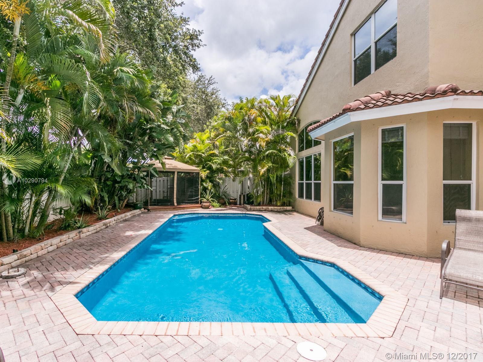 Nestled in the quiet and coveted guard gated community of Oakridge, this sought after Willow model spans just under a quarter of an acre of lush grounds, with a glistening pool, a tranquil gazebo with wooden deck, and a Tiki hut with outdoor entertaining amenities set on marble Travertine pavers. Generous interiors boast a grandiose master suite, a spacious kitchen full of natural light, and generous live-in quarters for comfort, and relaxation. Recreation at the community’s tennis courts, basket ball court, and children’s park, only minutes from main roads, I-95, and the turnpike, and close to houses of worship.