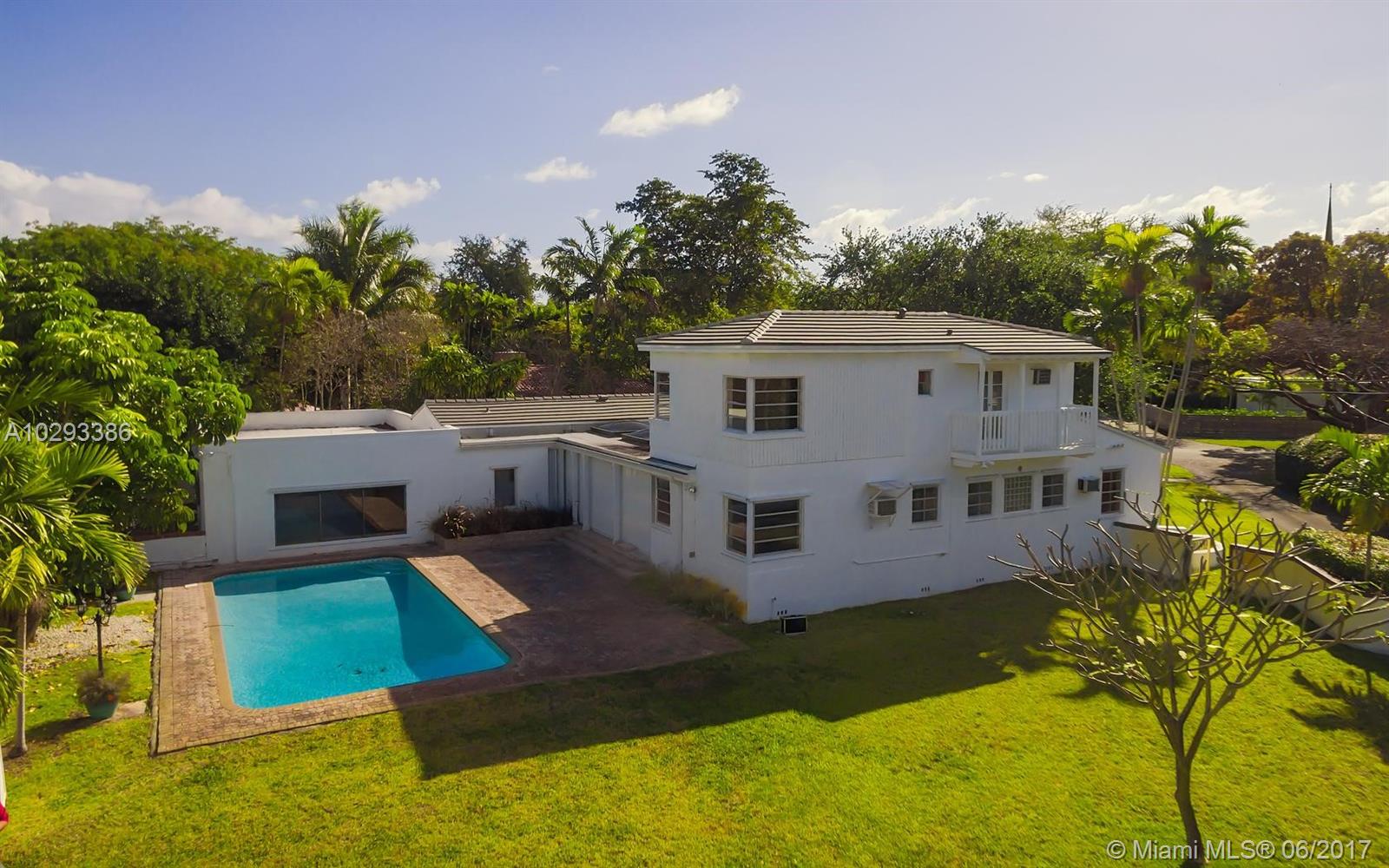 2 STORY MIAMI SHORES HOME, FIRST TIME ON THE MARKET IN APPROX. 30 YEARS. BIG WALLED LOT, POOL & PATIO. 5 BEDROOMS + OFFICE W/FULL BATH; 4.5 BATHS IN TOTAL. GARAGE WAS CONVERTED TO LARGE ENTERTAINING SPACE OVERLOOKING THE POOL. LAUNDRY & STORAGE ROOM WITH ½ BATH. GREAT SPLIT PLAN WITH PERFECT NANNY’S SUITE. THIS HOME NEEDS UPDATING. NEW TILE ROOF IN 2015. WOOD & TERRAZZO FLOORS. BIG OPEN LIVING SPACES GREAT FOR ENTERTAINING, WET-BAR. CENTRAL A/C.