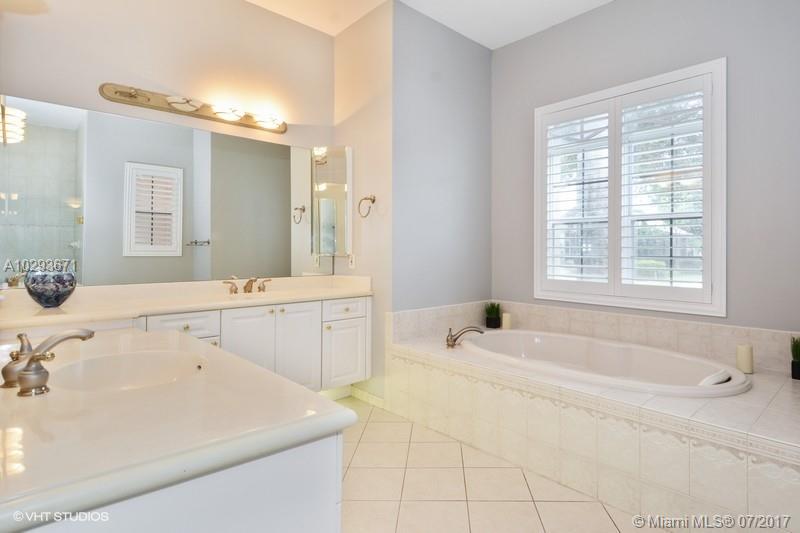 5Brm/4Ba PLUS LOFT. Youthful, pretty home with ALL the right details. Large fenced backyard on lake. Prestigious gated-guarded, happy place to live... Minutes to EVERYTHING you can think of. Wood floors in all bedrms. Natural light with lots of windows. Accordion shutters. Balcony overlooking wide lake, Closet systems, large walk-in closets. Plantation Shutters, Intercom, large pantry. Master & 5th brm downstairs. Jack & Jill bathrm. 2 new A/C in 2013. W/H 6 mo new. Best schools. Well-kept. Low HOA