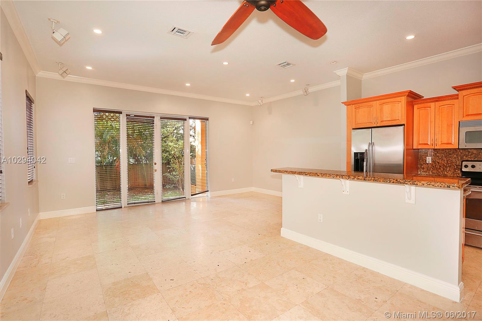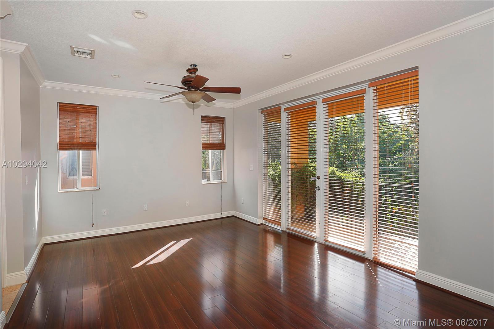 Gated townhome close proximity to all of the Groves finest amenities including parks, marinas, restaurants, shopping, entertainment and more. Spacious and light filled two-story layout. Kitchen features stainless steel appliances with beautiful wood cabinets and granite countertops. Family room and kitchen have views of the garden. Formal dining room includes a wet bar with built-in cabinetry and granite countertops. Master suite has a private balcony and en suite bathroom with marble surround separate tub and shower. Home has one car garage and additional parking behind the gate. Central location with easy access to Coconut Grove, Coral Gables, Downtown, South Miami and beautiful beaches.