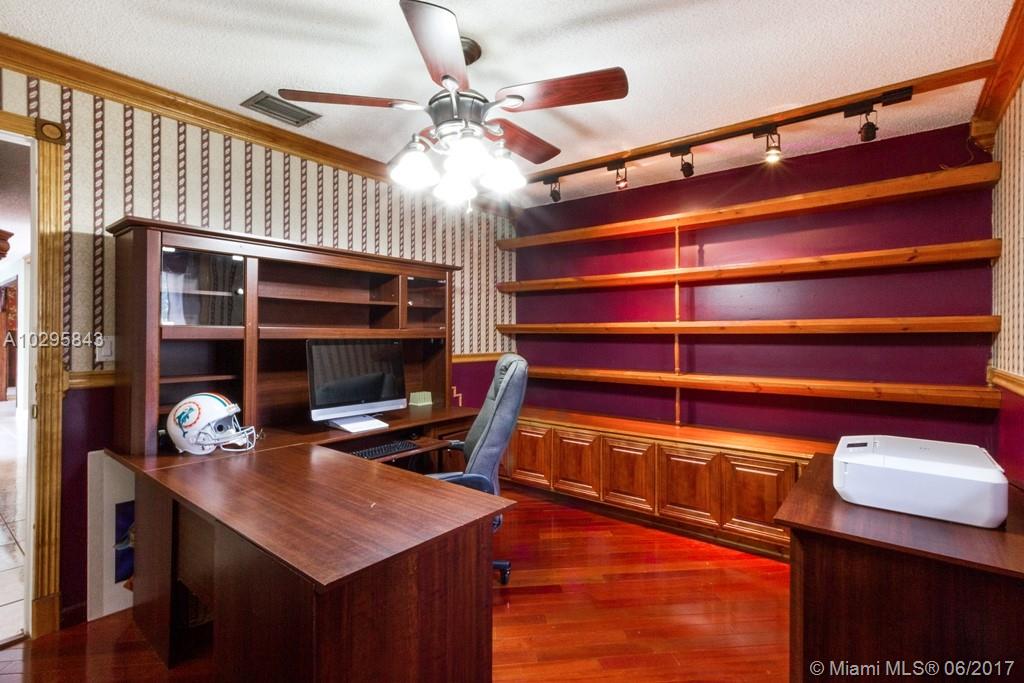 *TRUE PRIDE OF OWNERSHIP*4 Bed, 3 Bath Waterfront Pool Home plus Den w/Circular Driveway*Tile Flooring thru out Living Area, Wood Flooring in Bedrms*Formal Living/Dining Rm w/ Wood Trim*Kitchen w/Pull Out Lower Cabinets, Cooking Island w/USB & 2 Electrical Outlets Overlooking Family Rm & Pool Area*Master Suite w/Crown Molding, Dual Sinks, Separate Tub & Dual Head Shower & Bench Seat*Laundry Rm w/Recessed Lighting, Custom Cabinetry & Wooden Ceiling*Den w/ Custom Shelving, Pre-Wired Surround Sound & Extra Installation for Sound Proofing*Cabana Bath*Paved Patio w/Wooden Ceiling In Chevron Pattern Overlooking the Fenced Pool Deck, Spa & Water*Great for Sun Bathing & Entertaining*2 Car Garage w/Cabinets*No HOA* A Must See!