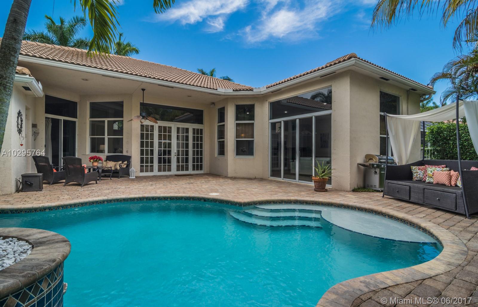 Popular Courtland model with Brand New Marble floors in living areas tucked on a quiet royal palm lined cul de sac street. Resort style custom heated pool with spa, pavers, privacy hedged and fully fenced. Double split floorplan with soaring ceilings with sliders to paver patio & pool. White kitchen cabinets with granite & Stainless Steel appliances. Center island and sunny breakfast area. Interior freshly painted in todays colors. Extensive crown moldings, high baseboards.Wood floors in all bedrooms, closets professionally organized, Cabana bath to pool, paver driveway, crown moldings and so much more.