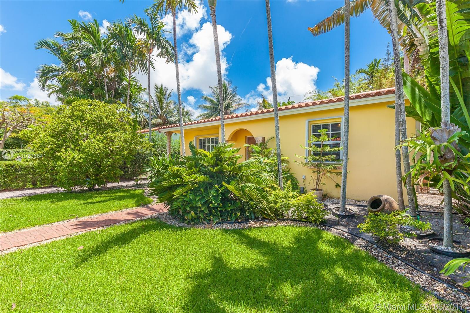 Beautiful one story home nestled in a quiet and private street in Coral Gables. This home has beautiful Mexican Terra-cotta tiles throughout. The bathroom has been fully renovated. The kitchen offers stainless steel appliances, beautiful wood cabinetry, plenty of storage, and a large stainless steel farmer's sink. The backyard is an oasis with stone throughout and foliage for shade and beauty. This property is perfect for a single person or small family. Have your children go to some of the most coveted schools in Miami, while enjoying the proximity to restaurants such as Versailles, shopping at Miracle Mile, and Coral Gables Country Club.