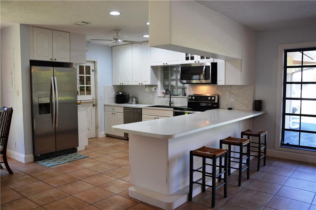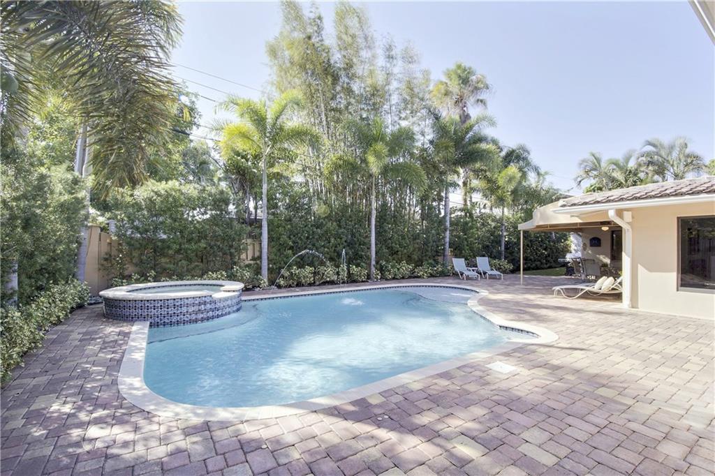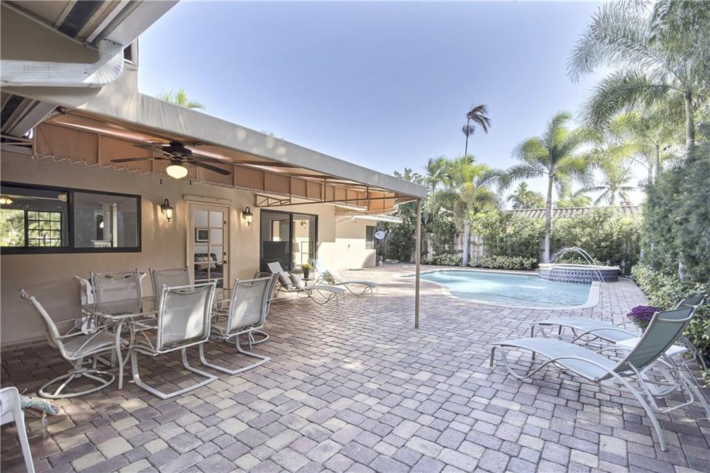 Coral Ridge pool home in the "A" rated Bayview School District. Open floor plan with updated kitchen & new stainless appliances. 2 car garage w/impact garage door.Split bedroom plan.Large inside laundry room.Additional outdoor living with newer heated, saltwater pool & hot tub -LED lights, sun shelf entry, umbrella holder, water features. Relax in the shade under the awning and watch TV. Outdoor shower, cabana bath to pool, large additional side yard. Home protected with impact windows/doors and shutters.