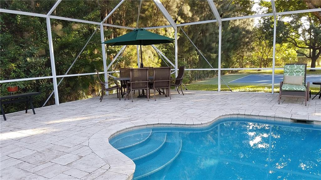 Large private lot, .8 acres, with expansive screened pool overlooking tennis court. The five bedroom (Den could be sixth bedroom) and four bathroom home is located in historic Plantation. Meticulous landscaping with circular paved driveway located walking distance to community parks and tennis courts and library. Short drive to mall shopping, grocery stores and restaurants. This open floor plan is perfect for entertaining large groups or fine dining in the formal dining room. This is a must see!