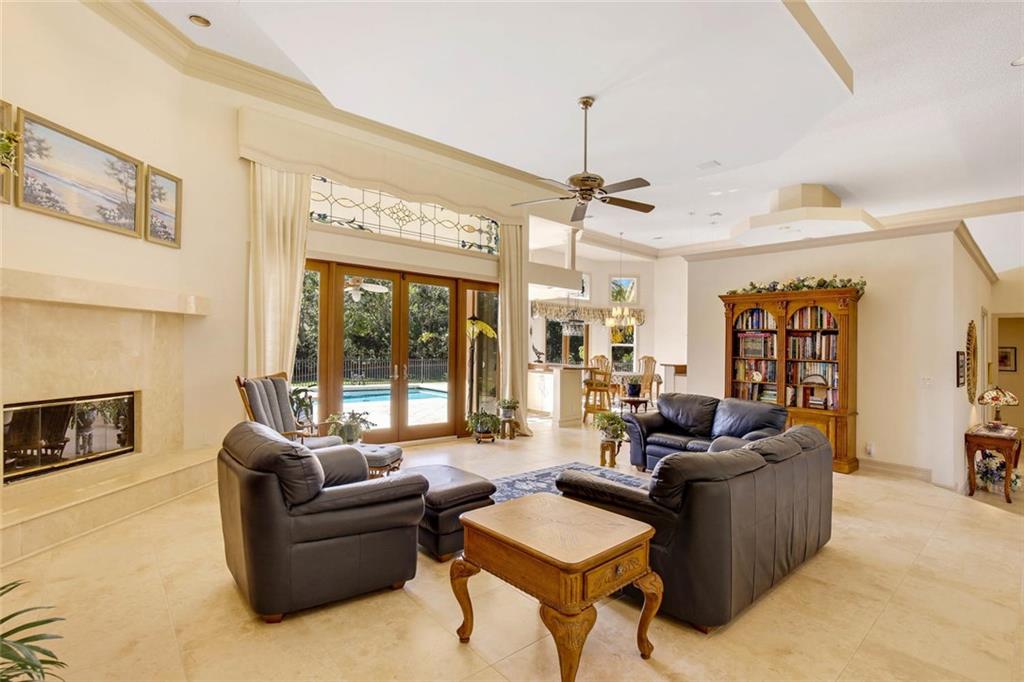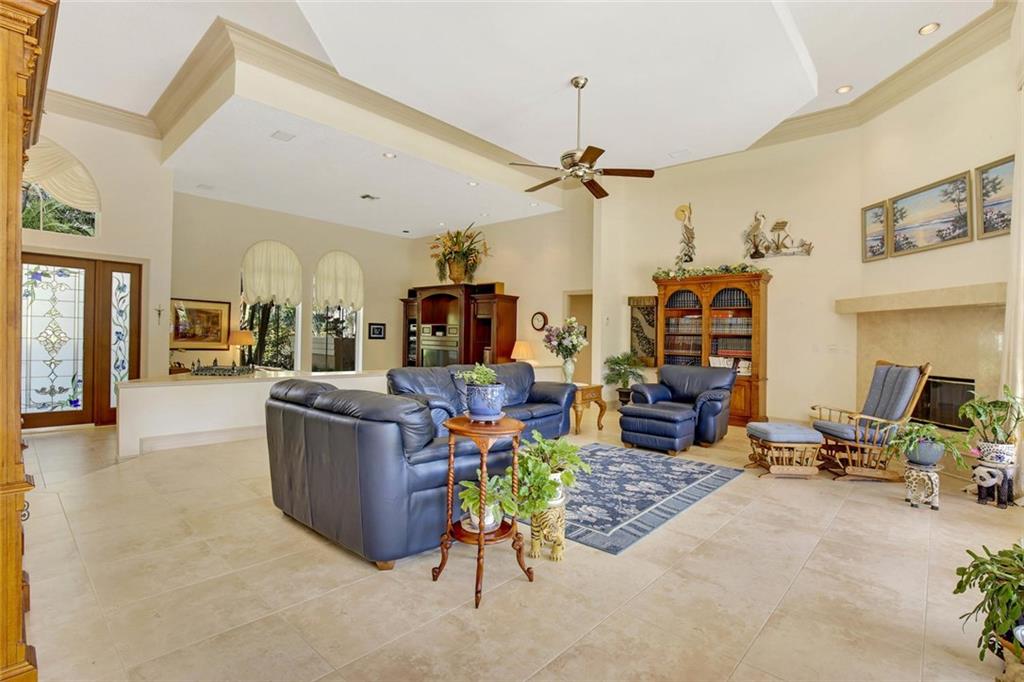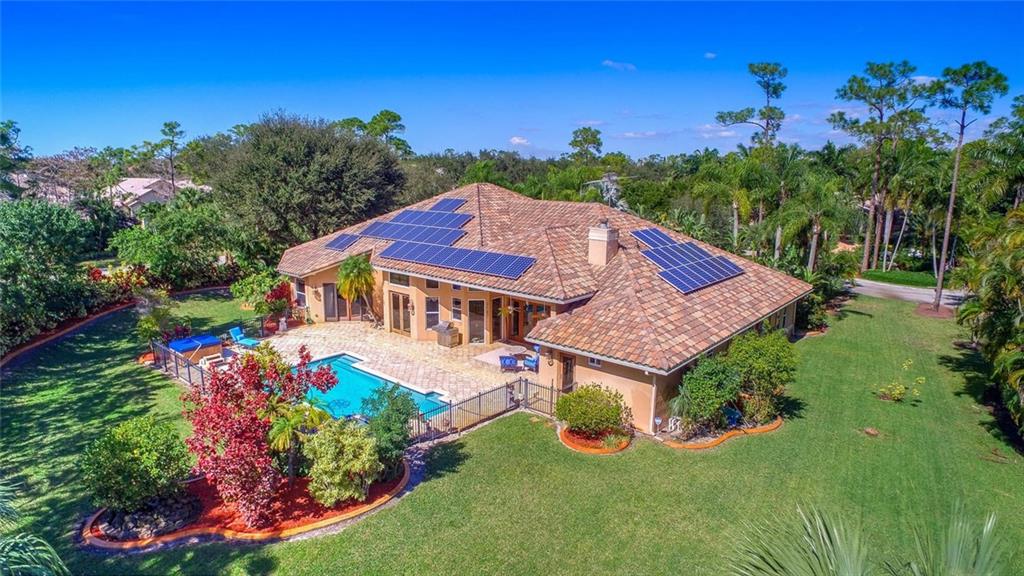 5BR/4.5BA energy efficient, estate home located on a wooded 1-acre lot in prestigious Whispering Woods! Open floor plan features: impact windows & doors * solar powered electric * new roof in 2012 * gourmet kitchen with wet bar * Master Suite & sitting area features 2 walk-in closets with custom built-ins and large bathroom with jetted tub & separate shower * stained glass front door * fireplace * surround sound speakers (inside & out) * 3 A/C units * central vac * HUGE laundry room * spacious BRs