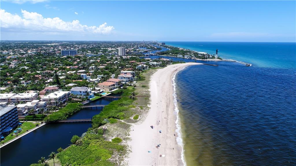 Light, bright & beautiful 3-story townhome in Hillsboro Bay by the Sea. Stunning views of the Hillsboro Inlet, lighthouse and beach. Gourmet kitchen w/Viking & Miele appliances & accent lighting. Expansive 3rd floor master suite w/fantastic ocean view, 2 private terraces, huge custom walk-in closet, dual shower heads and Jacuzzi tub. Additional features include elevator, plantation shutters, Crestron interface, 2 A/C units. Great for entertaining, custom built in-bar, outdoor bar large heated pool & spa.