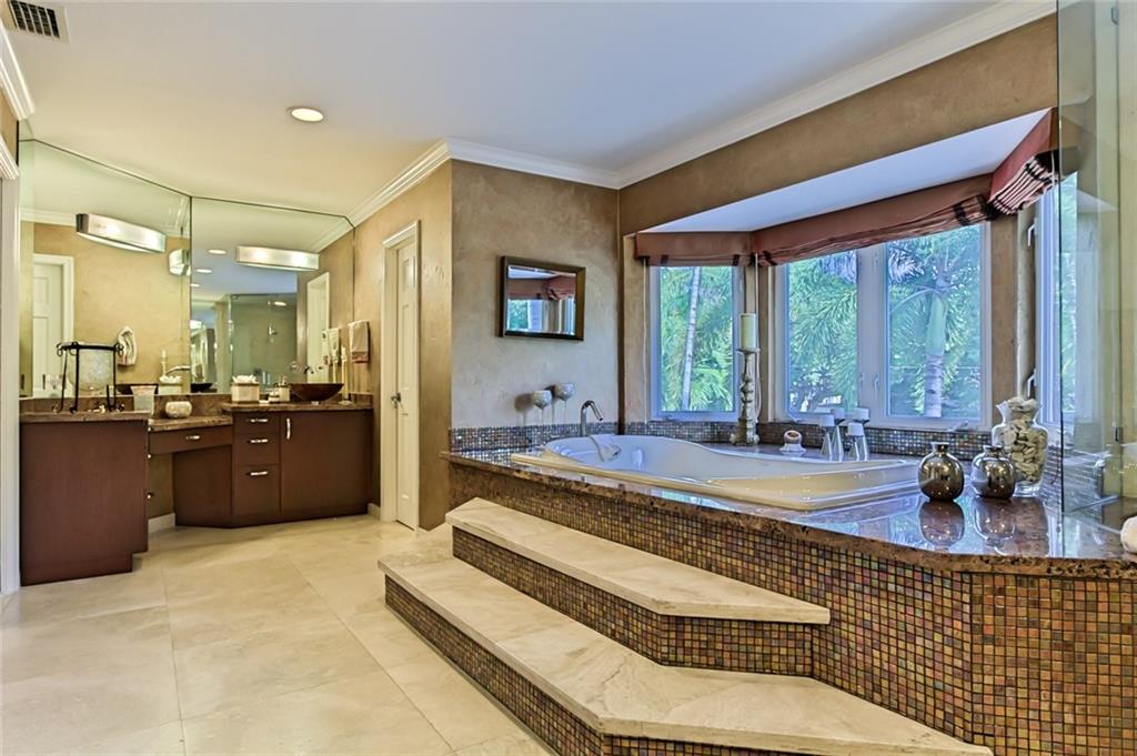 Stunning 4 Beds, 4 full Baths+1/2, Office, media room, 2 car garage, pool,spa on 87' of waterfront home in highly sought out Coral Ridge. All graciously redone renovations with impact windows and doors. Open floor plan. Chef's kitchen w/double fridge, dishwashers. Wine cooler. Vaulted ceilings, cover patio to the pool. 2 fireplaces. Master suite w/2 walk-in closets, MBA w/Jacuzzi, 2 sinks & a large steam shower. A fantastic family/entertainment home. Walk everywhere!