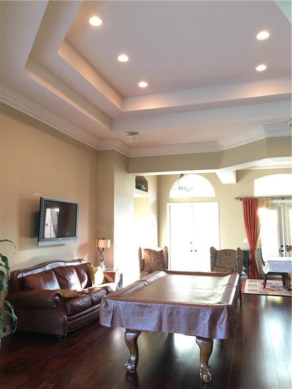 Spectacular wide open triple split floor plan with 17 foot ceilings.Durable wood floors throughout. Large deep pool equipped with swim in place propulsion,LED lighting(controlled from inside house) & 3 fountains. Intercom throughout house. 4 ceiling flush mounted speakers. Extended fenced yard. Beautiful views of lush landscaping on a wide area of HB lake. Very little traffic due to location. Huge kitchen pantry. 2 walk in closets in MB. Walk in closet in princess suite. Bonus room instead of 5th BR