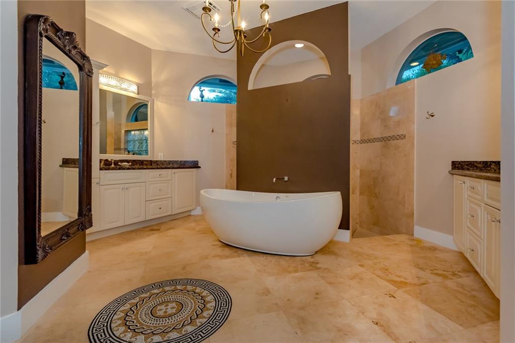 3828' Home in Carriage Pointe Estates, 3 car garage on a cul-de-sac. Extra wide entry foyer welcomes you into a spacious living room and formal dining room. Numerous upgrades include soaring 12' ceilings, porcelain floors, and designer master bedroom suite. Custom kitchen with breakfast bar, breakfast room and family room make entertaining perfect and easy. Cabana style patio provides outside living lifestyle. Enjoy the heated pool and hot tub overlooking this quiet lake with a million dollar view.