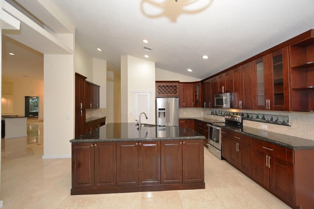 Fantastic Find!! Custom home in THE GREENS at Eagle Trace. Large 5 bed 4 bath pool with 3 car garage. New kitchen with walk in pantry, plenty of cabinets, granite counters and new stainless appliances. Marble floors, high ceilings, wet bar and knockdown finish. Perfect home for entertaining. Master bath has roman tub, bidet, and a walk in shower. Outside has a covered screened patio with pool and spa, large circular covered driveway. Guard gated community. Golf Membership available. Make an offer today.