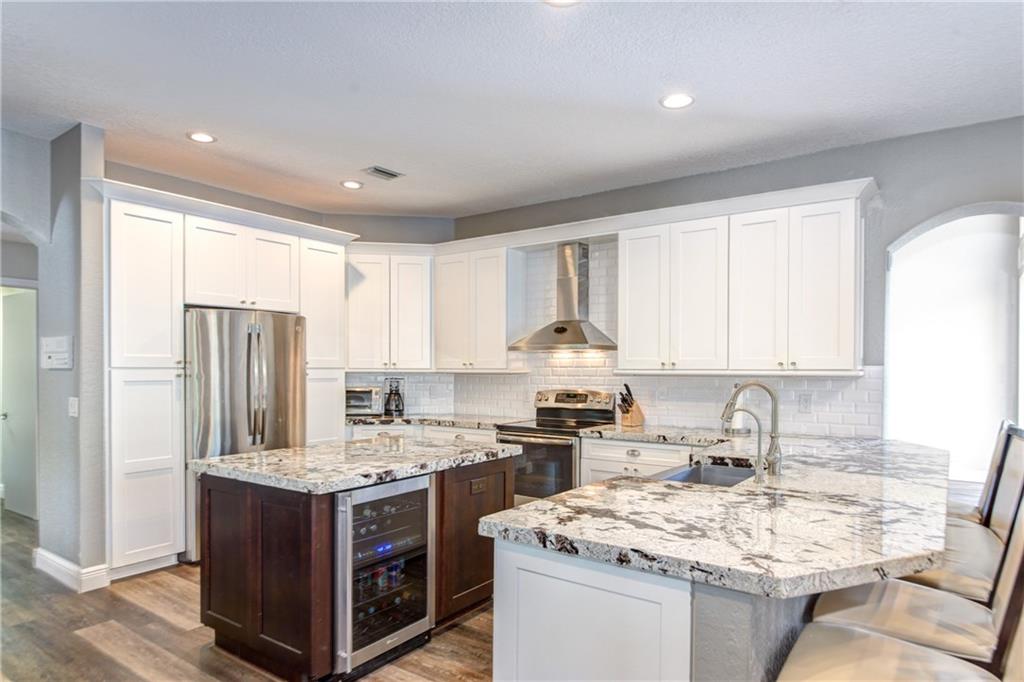 This Beautifully Updated Home is Fresh & Crisp! Breathtaking New White Kitchen with a Dark Contrasting Island, High End 2" Mitered Edge Granite Tops, Stainless Steel Farmers Sink, Subway Tile Backsplash, SS Appliances & Beverage Cooler! The New Flooring Throughout the Home is a "New Green Technology with Zero Emissions, is Waterproof with Cork Underlayment & Made in the USA. Huge Screened in Porch & Pool Area! Newer A/Cs, Washer/Dryer, New Paint inside/out! Backs up to a Serene Preserve! Guard Gated!