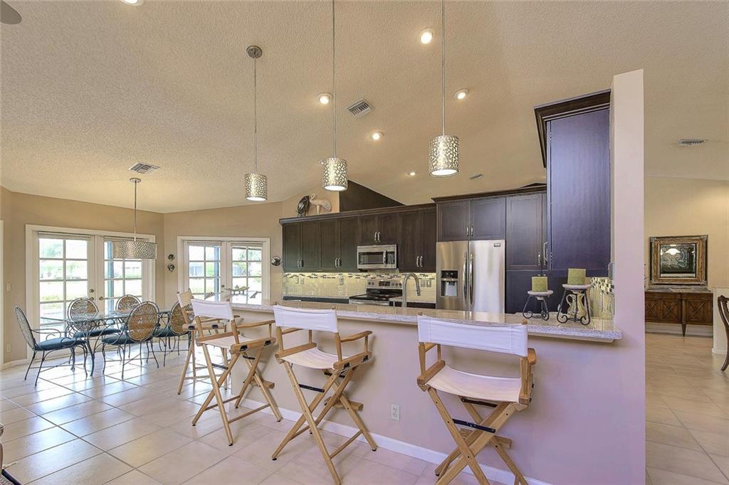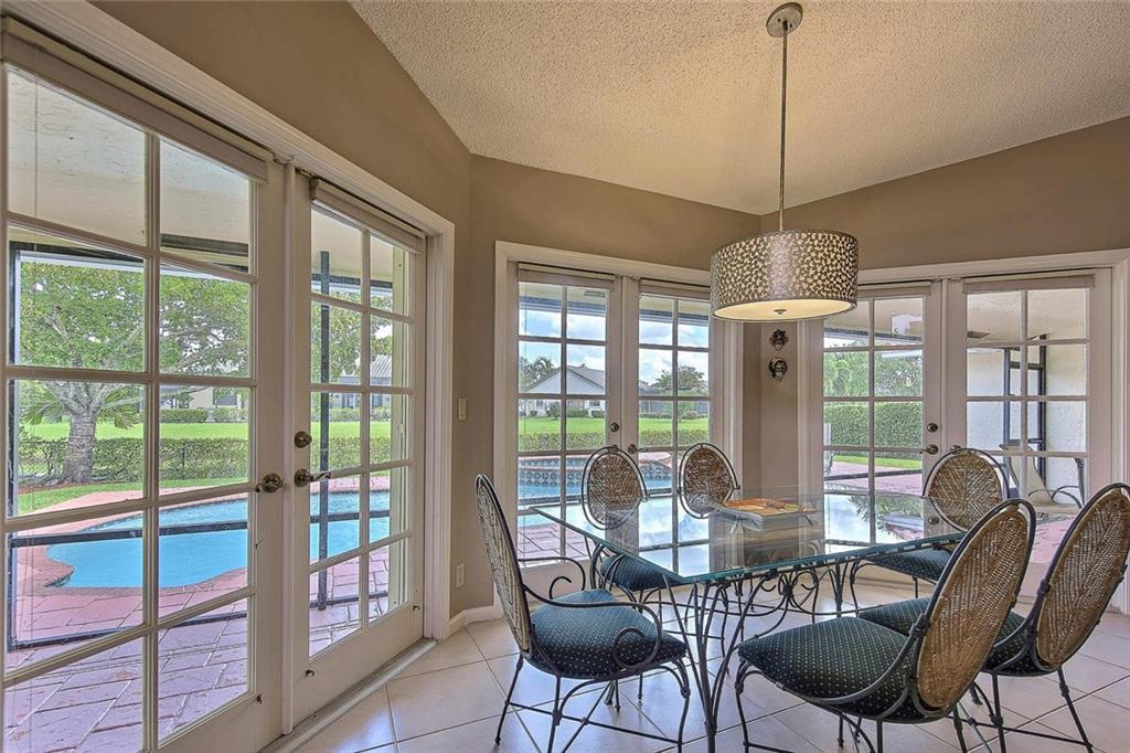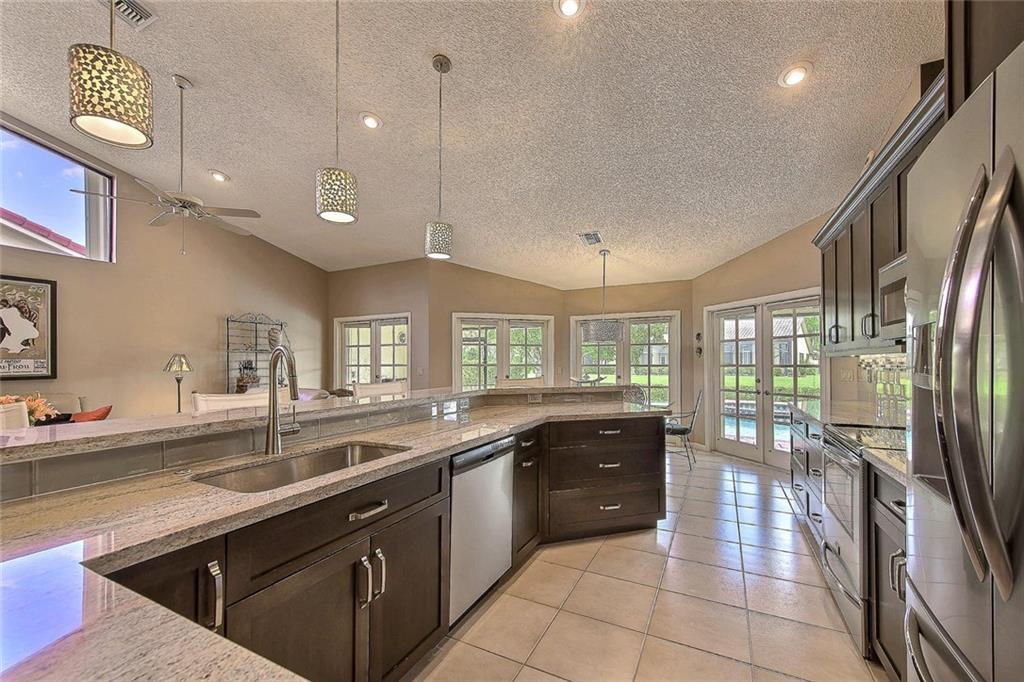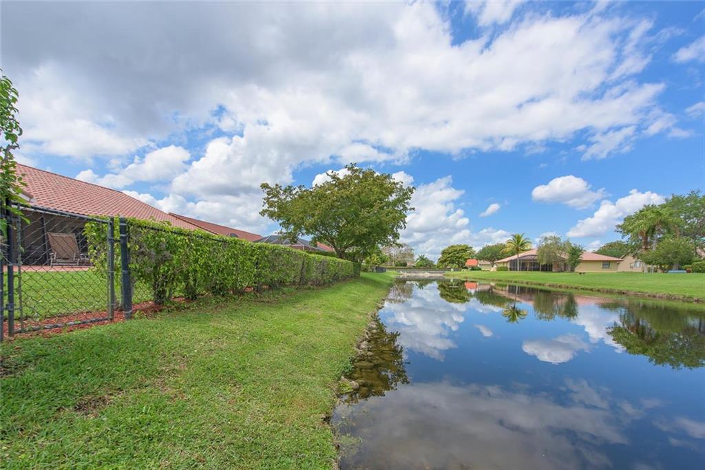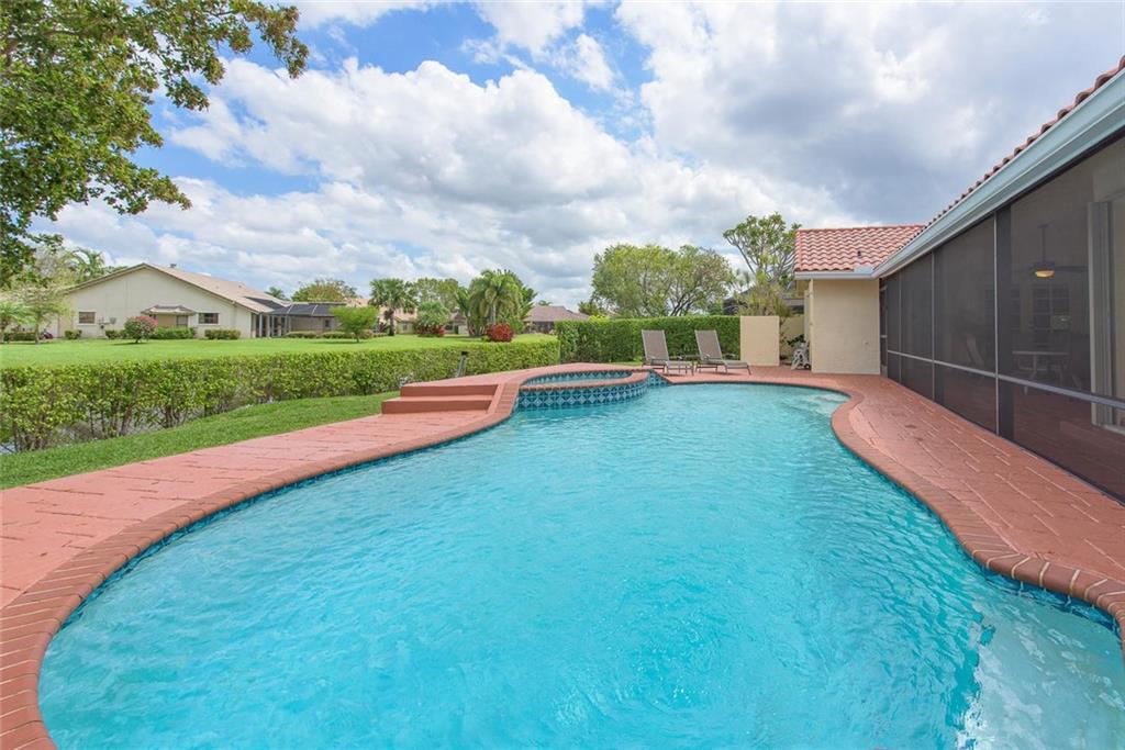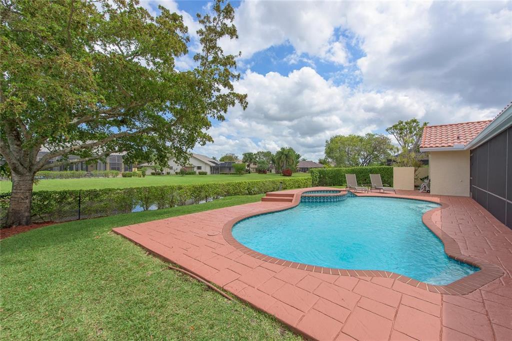 Classic contemporary waterfront pool home on quiet tree lined street in most desirable subdivision. Gorgeous custom kitchen 1 year new with designer features that include granite, stainless, pendant lighting, china cabinet, pull outs, pot drawers & more. Accordion shutters & newer roof. Light stone-look floors, vaulted & cathedral ceilings. French doors & lots of hi hats. Covered screened patio, fenced yard. Newer 2 zone A/C. Low HOA, private yard, room for swing set. Run don’t walk! This is a true find!