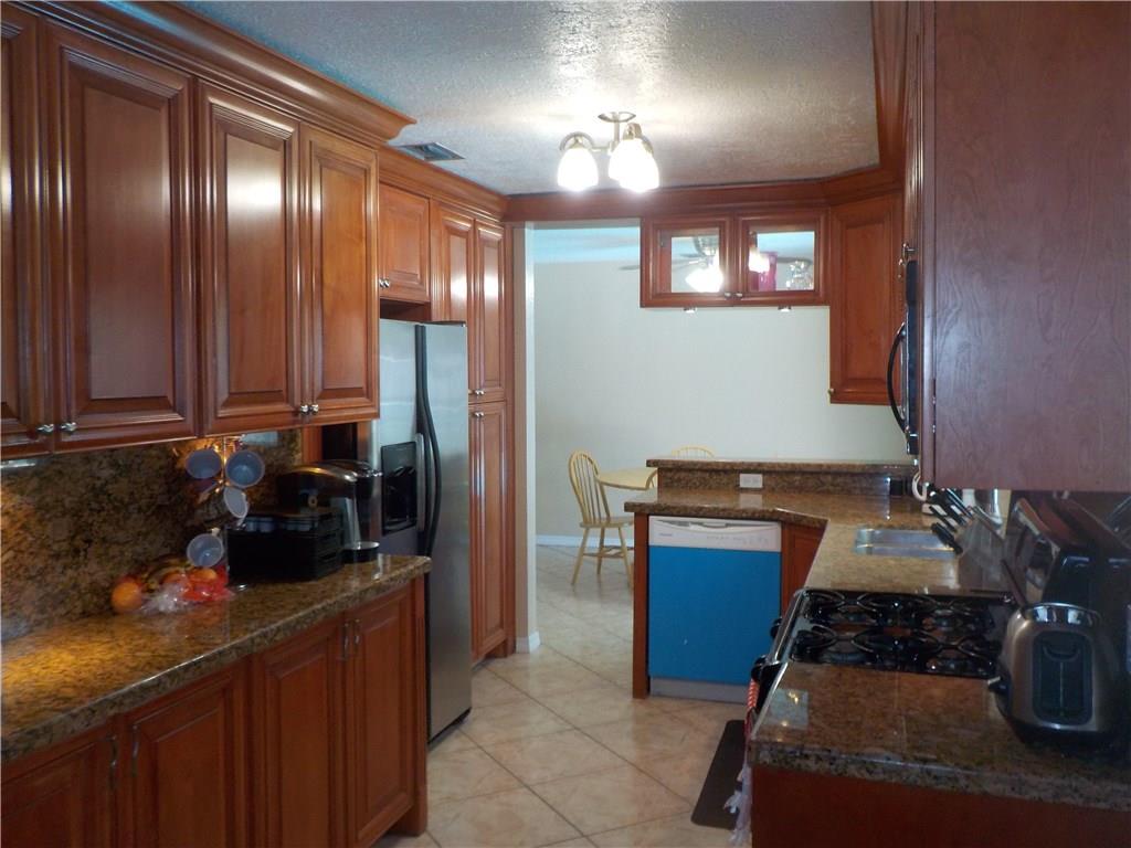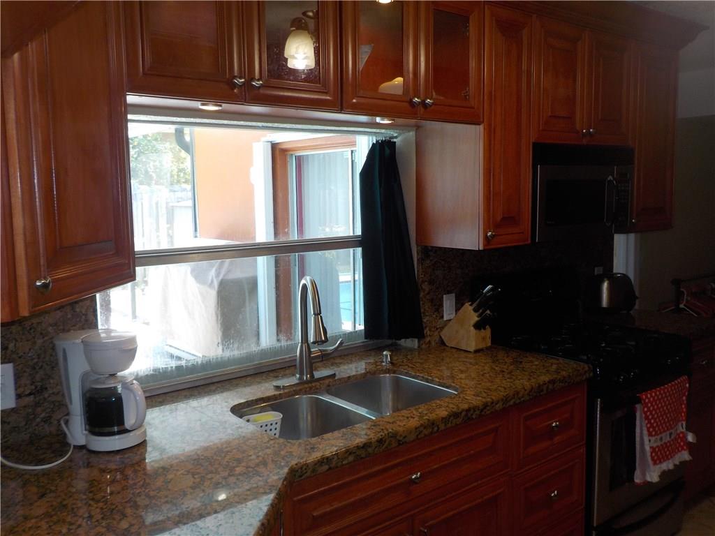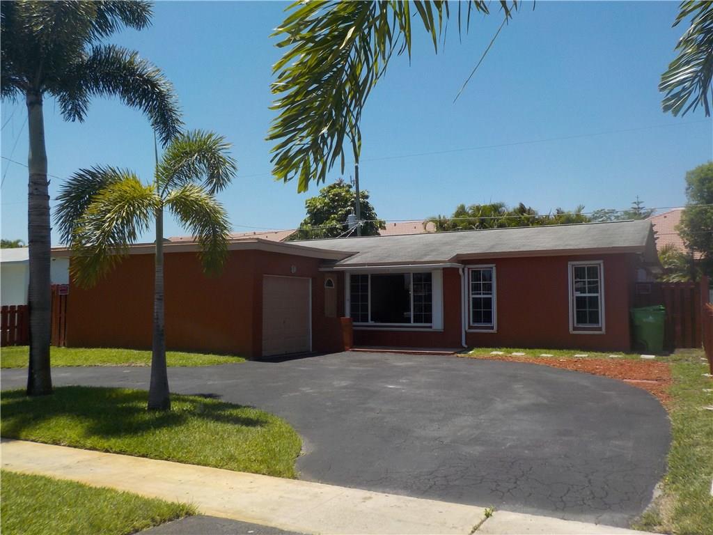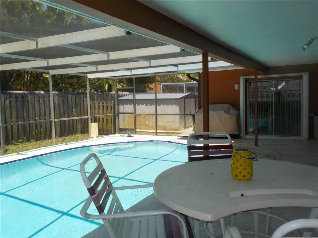 Beautiful 4 bedroom 2 bath in the heart of Sunrise Golf Village. Large eat-in kitchen with real wood cabinets, granite countertops and gas range. Relax and enjoy your sparkling pool with fully screened enclosure. Peace of mind and security are some other benefits of this home with security cameras and accordian hurricane shutters throughout the property. Circular driveway, fully fenced in yard, large aluminum shed and newer air conditioning unit add to the value and comfort of this great property.