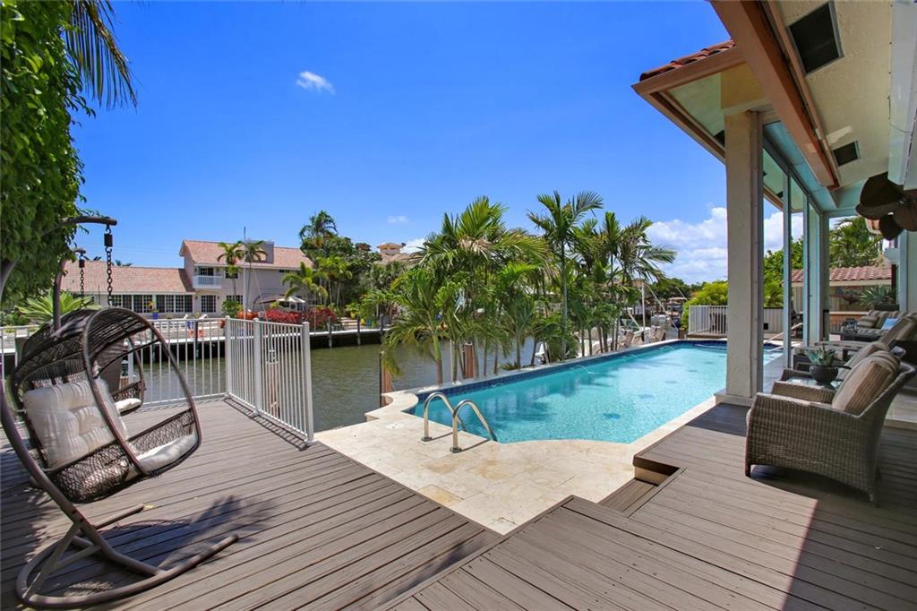 Stunning indoor/outdoor 3 bed, 2 bath waterfront home, located close to the beach. This designer home features custom woodwork, marble floors, wood shutters & a wall of glass doors for natural light. Open floor plan, gourmet kitchen, stainless appliances, granite & glass countertops. 14' ceilings, large living, dining & entertaining areas. Luxurious master bedroom suite and steam shower. Brand new air conditioner. Private 80' dock, wide canal, boat lift, pool, summer kitchen, lighting & sound system.