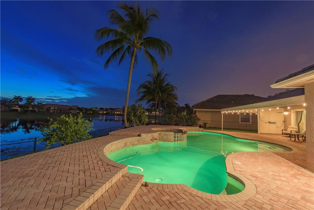 AMAZING WATER / SUNSET VIEWS! 4 Beds, 2.5 Baths Waterfront Pool Home w/Many Upgrades Including Newer Kitchen w/Stainless Steel Appliances, Granite Counters, Custom Cherry Wood Cabinets, Newer Flooring Throughout, All Upgraded Baths, Long Lake Views, Huge Pool & Patio Area Perfect For Entertaining With Awning, Accordion Hurricane Shutters, Fenced-In Yard, Lush Landscaping & Curb Appeal, This Home Is Truly Turnkey, Sit Back & Watch Amazing Sunsets In Your Back Patio Area, Guard Gated Community, Won't Last!