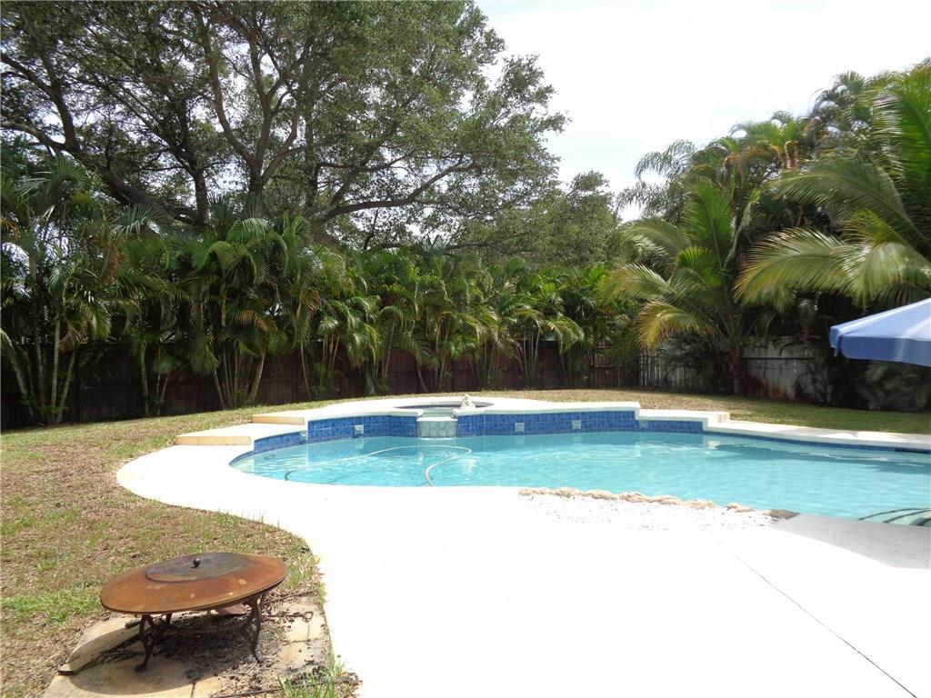 Charming California Style 3/2 home on CORNER, OVERSIZED, CUL-DE-SAC LOT in Palm-Aire Village. Lovely covered patio leading to open 18x36 heated & cooled, saltwater Pool & Spa! Home features a split bedroom plan. Sunken living room with beautiful fireplace and custom stone wall. Crown molding. Kitchen is open to living area. Impact Glass on front window & door. Garage door & side garage door is Hurricane proof! Roof replaced in 2005. A/C replaced with 5 ton unit. Great location between Turnpike & 95.