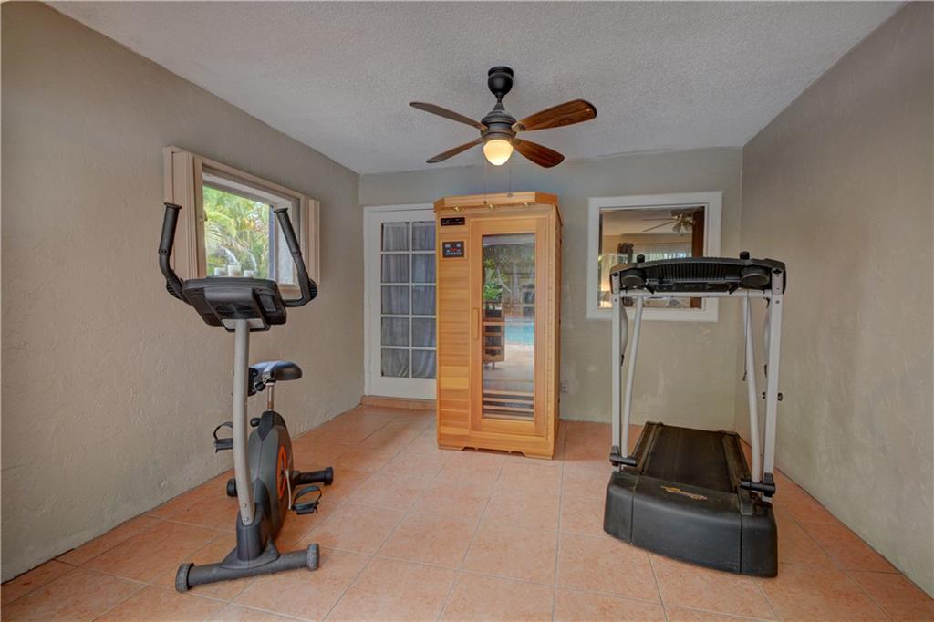 Welcome to your private tropical oasis! This resort style 3 bed, 2 bath pool home features a mini gym with Sauna, newer roof, new hot water heater, new electrical, large bedrooms, cabana bath, tile through-out living areas, split floor plan, formal living & dining rooms, real fire place, hurricane shutters, updated bathrooms and eat-in kitchen. Close to shopping, dining and Sawgrass. No HOA! Priced to sell!