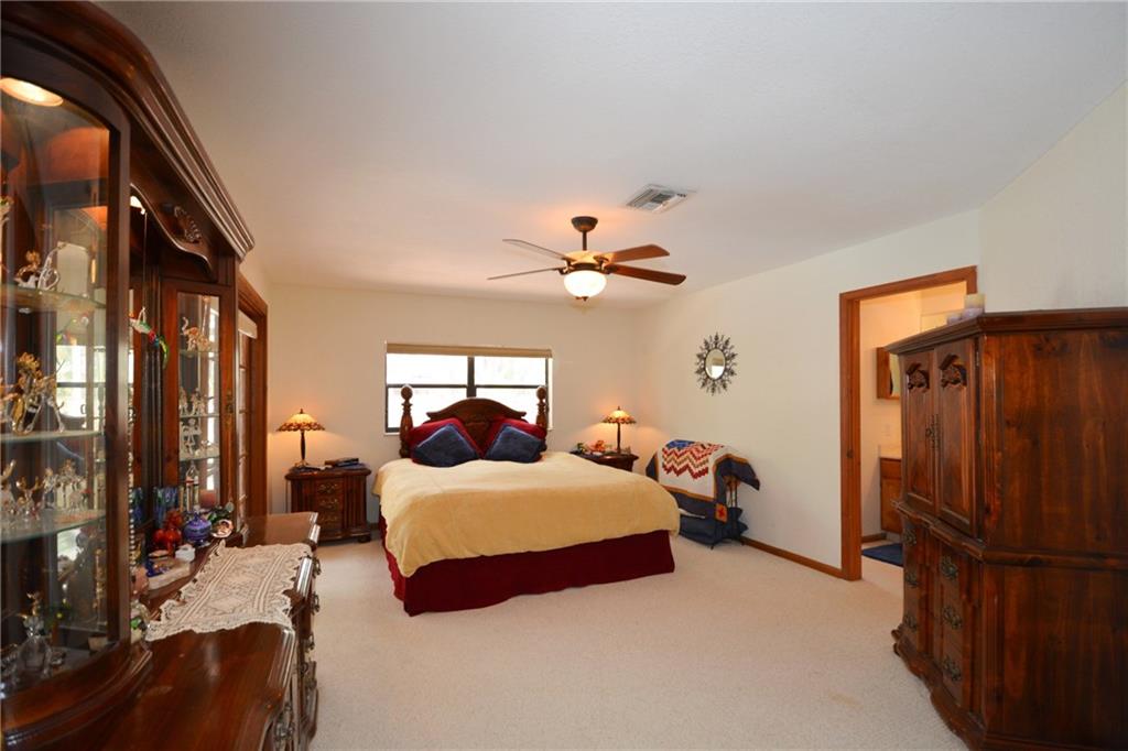 Wowza! Boca Rio Beauty! Lots of house for the money in this sprawling home with soaring cedar ceilings, custom kitchen with real-wood cabinetry, cooking island and pantry that overlooks family room and screened-in lanai with large pool, new diamond-bright, paved patio and hot tub. Generous room sizes (one bedroom is an open Den), fireplace and expansive master suite with newly-tiled shower and walk-in closet. Two new a/c systems, hurricane protection and utility room. No HOA and superb location!