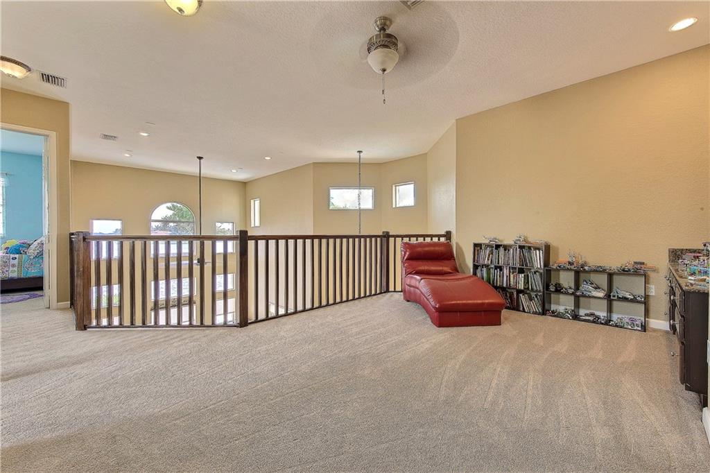 AMAZING Waterfront Luxury Dream Home w/Spectacular Views! Upgraded 5 Bedrms + Loft w/4 Baths Home. Back Patio Perfect For Entertaining, Heated Pool/Spa! Custom Kitchen w/Granite Counters, Island, Double Oven, Wine Fridge, Stainless Steel Appliances, Newer A/C Units, Volume/Tray Ceilings, Plantation Shutters, Master Suite w/Sitting Area, Newer Wood Floors & Tile, His & Her Master Bath, Accordion Shutters, Pre-Wired For Generator, Guard Gated, HOA Includes Lawn/Cable, Alarm, Eagle Trace Tennis. A Must See