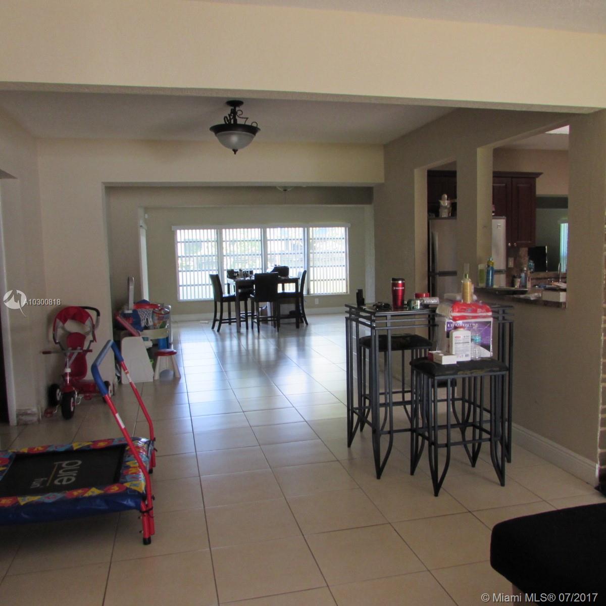 Beautiful, super large single family 3/2 home in heart of Miramar. This home features 3 eating areas, two living spaces, and plenty of room for more. Updated kitchen with stainless steel appliances. Updated bathrooms. Tile floors in living spaces and laminate wood floors in bedrooms. Home also features hurricane impact glass doors and brand new accordion shutters. A/C handler was installed in 2013. Roof was installed in 2006.