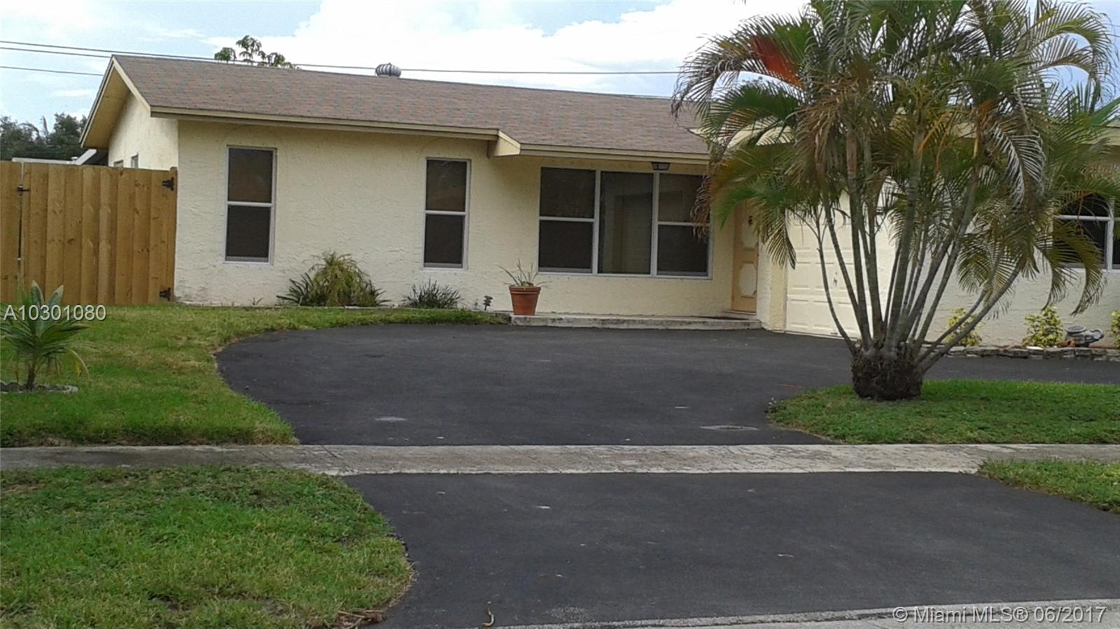 BEAUTIFUL RECENTLY REMODELED HOME WITH OVERSIZED LOT. GAS STOVE AND WATERHEATER HIGH END TRANE AIR CONDITIONING UNIT WILL KEEP YOU ELECTRIC BILL LOWER THAN AVERAGE. CIRCULAR DRIVEWAY FOR PARKING AND ONE CAR GARAGE. CLOSE TO SAWGRASS MILLS.