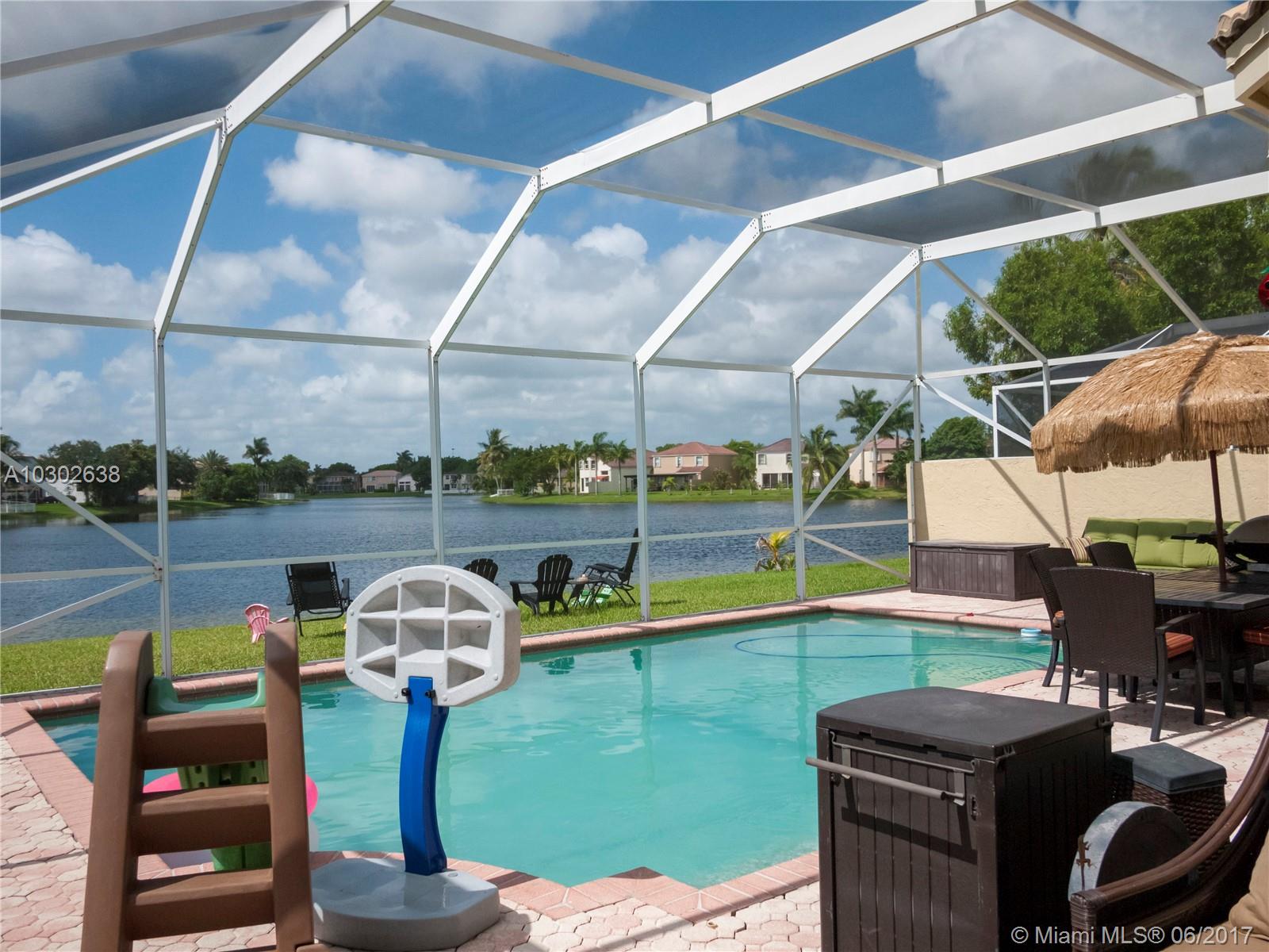 Beautiful and spacious two story lakefront 4 bedroom, 2.5 bath pool home located in the desirable west Pembroke Pines community of Towngate.High ceilings,formal dinning & formal living. Eat-in kitchen overlooking the pool & lake, plus breakfast bar for extra seating.Screen in, pavered patio for entertaining. Gated community with electronic gate access & roaming security patrol.Close to grade A schools, shopping, entertainment, and much more. Tot lot, basketball courts, & tennis close by.Stunning wide lake view throughout the house.