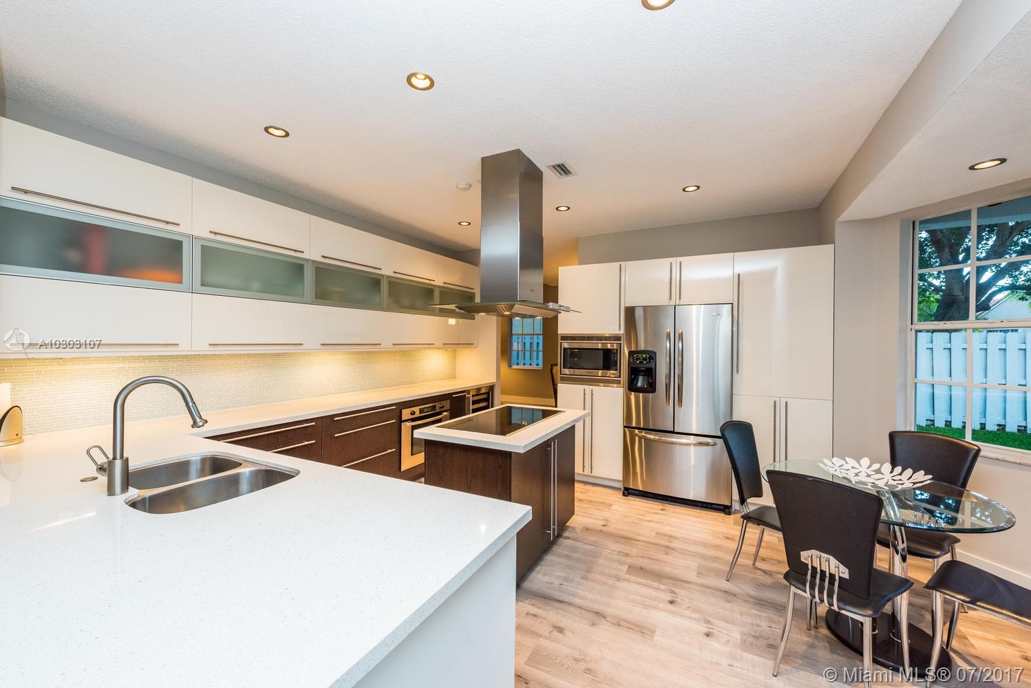 RENOVATED TO PERFECTION! CUSTOM-DESIGNED KITCHEN WITH BOSCH APPLIANCES, QUARTZ COUNTERTOPS, ISLAND WITH STOVE TOP AND VENTED BOSCH HOOD, REFRIGERATED WINE CELLAR, NEW WOOD STAIRWAY WITH METAL RAILINGS, HALF BATHROOM WITH CUSTOM CABINETS AND TOTO TOILET AND FIXTURES, UPSTAIRS NEW WOOD LAMINATE FLOORING, CUSTOM CLOSETS IN EVERY BEDROOM, MASTER BEDROOM WITH SITTING ROOM, WALK-IN CLOSETS AND REMODELED BATHROOM. GUARD GATED COMMUNITY 24/7 WITH COMMUNITY POOL AND A+ SCHOOLS!