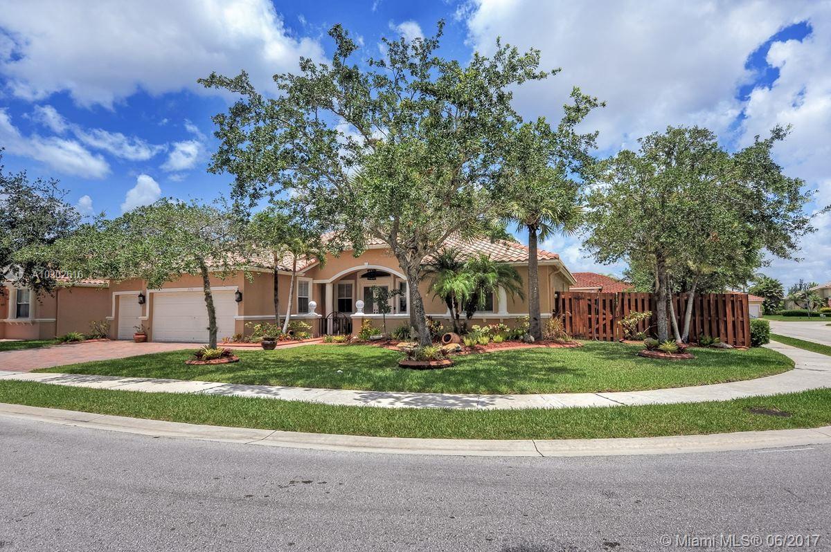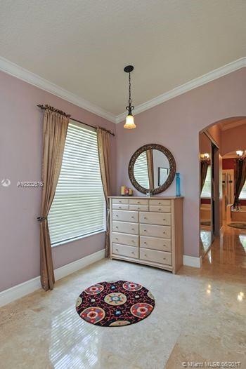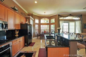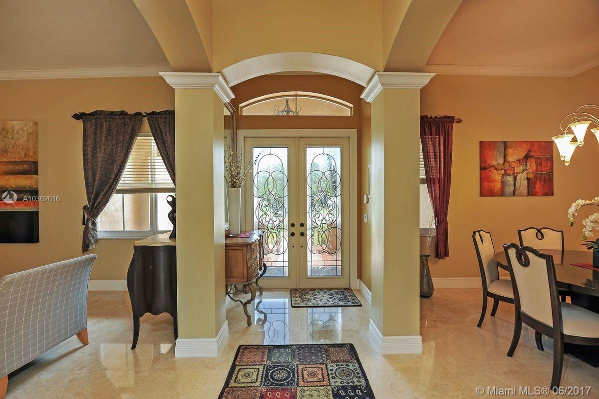 Open and bright corner home fully upgraded. Impressive entrance with beautiful glass doors that allows natural light. Volume ceilings and marble floors throughout. Crown moldings, 6" baseboards. Jacuzzi tub in Master Bathroom. Cover lanai with extensive paved area for entertaining. Italian Murano glass sconces and matching chandelier, provides an elegant touch. Manned-gated Encantada sought neighborhood with great schools. Move in ready!