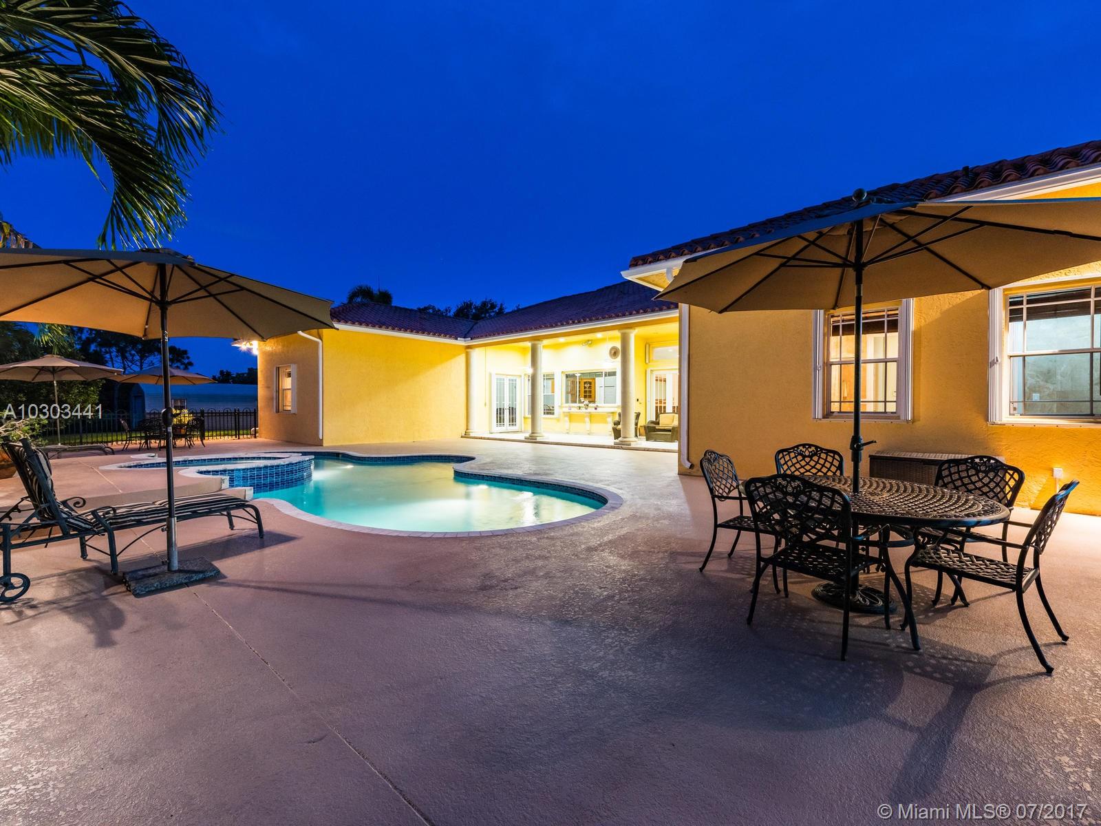Breathtaking Ranch style Estate home in highly coveted Green Meadows, Southwest Ranches. This magnificent property boasts a private (1.15 acre) corner lot, 6 bedrooms, 5 full baths, beautiful & spacious country style chef's kitchen w/ double oven, 42" wood cabinets & cooking island. Generous triple split floor plan, marble floors, crown molding, wood burning fire place, central vacuum, powerful generator able to supply entire home, surrounded by 23 keystone columns tied in w/ aluminum fencing & electronic gate for privacy & security. Super sized (41X31) detached carport for both boat & RV parking. Crystal clear pool w/ spa & cool deck, 2 H-VAC systems, accordions shutters, Venezuelan clay tiles roof w/ 5 year roof protection & astonishing lush landscaping, manicured lawn & pineapple palms.