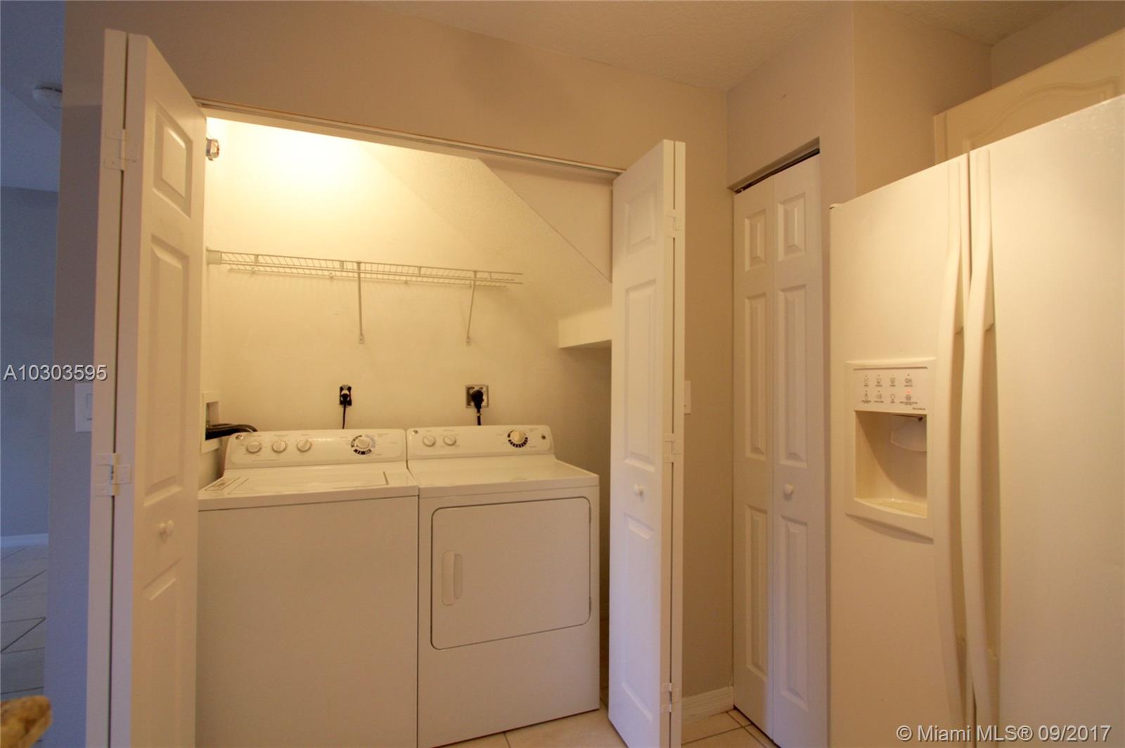 Two-story townhouse with two bedrooms and 2.5 baths in the coveted, gated community of Pembroke Cay. Granite counters in kitchen. Full size washer and dryer in unit. Tile floors downstairs. New carpet on stairs and second floor. Freshly painted. Private courtyard. Hurricane shutters. Community features pool, playground, nice landscaping and water views. Across the street from great restaurants and shopping at The Shops at Pembroke Gardens. Whole Foods, Trader Joes and BJ’s Club are also close by. Close to great schools and easy access to major highways. Great place to live or invest!