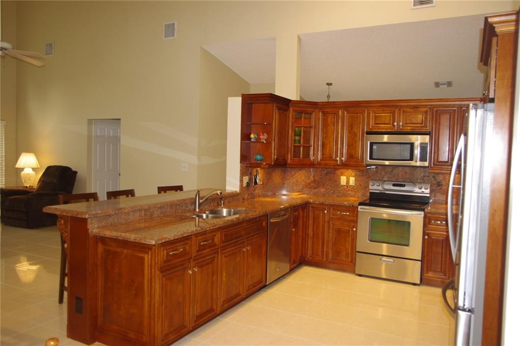BROOKSIDE GROVE well maintained 4BD 2.5BA on a large lot in beautiful "estate area" of Brookside, split floor plan, vaulted ceilings, remodeled kitchen, granite counters, SS appliances, newly painted inside & out, plenty of natural lighting, porcelain tile flooring through out, newer a/c, tile roof, accordion shutters, enclosed screened pool with covered patio, grass yard with tropical landscaping and trees. Low maintenance fee, top-rated schools, near North Community & Betti Stradling recreational parks.