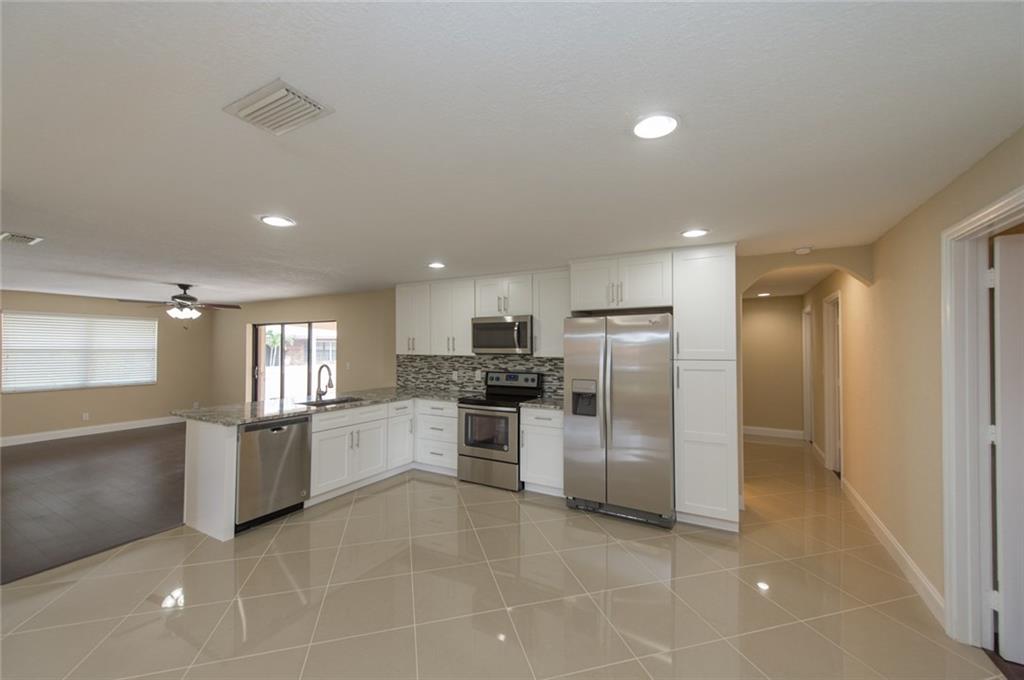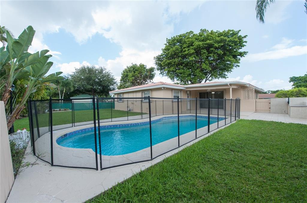 Modern 4/2 Pool Home features Split Open Floor Plan, White Soft Close Shaker Style Kitchen Cabinets with Granite Tops, New SS appliances, LED High-Hat Lighting, Italian Imported Porcelain Tile Floors. New Paddle Fans, New Levelor Style Window Blinds. New Walnut Wood Laminate Floors. Newly Replaced 5 ton High Efficiency A/C Custom Garage Floor. Large Private Fenced Yard w/ Pool & Child Guard Safety Fence. Built in BBQ w/ Tiled Counter, Accordion Hurricane Shutters, New Landscape, located in Cul-De-Sac.