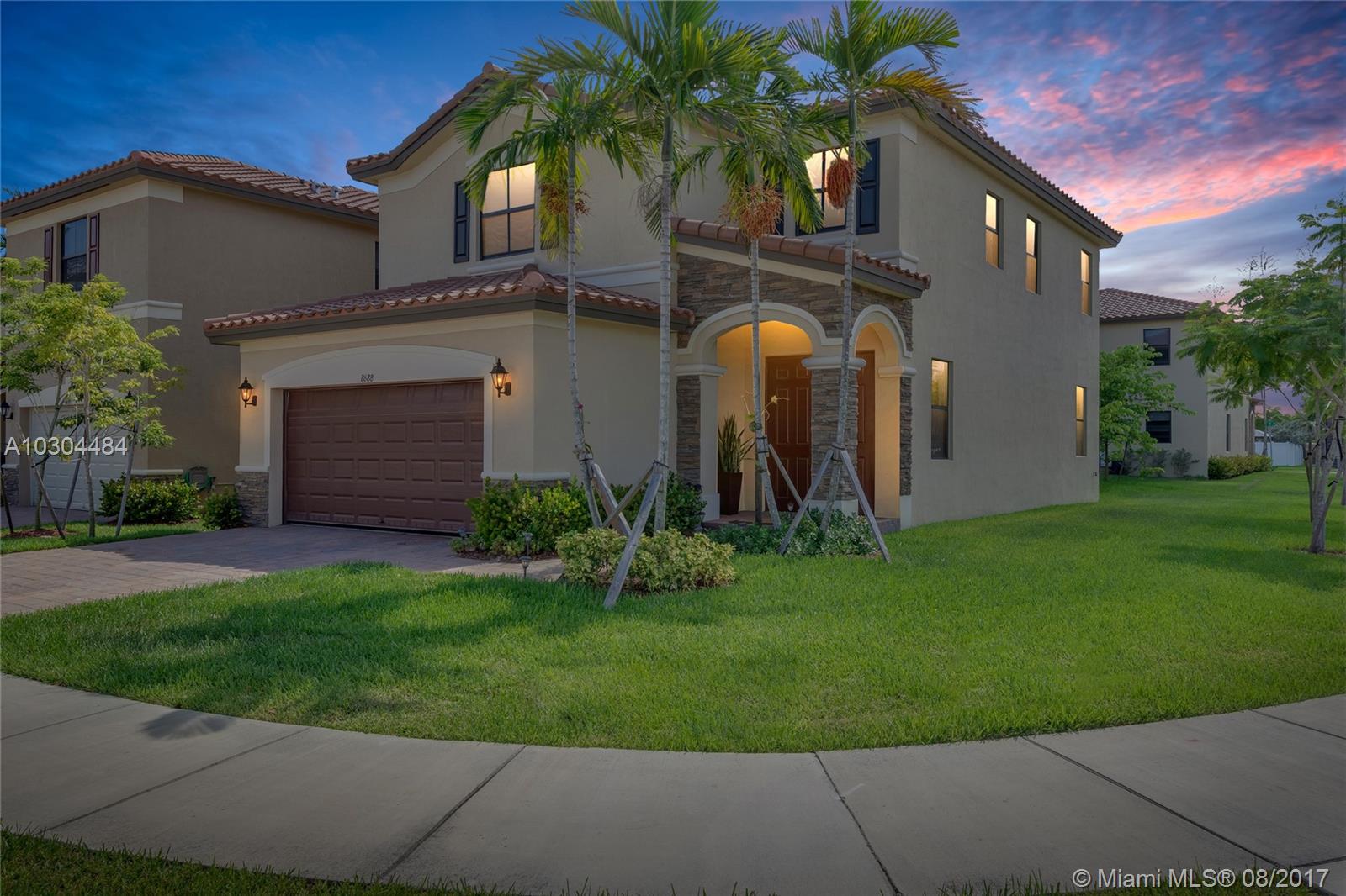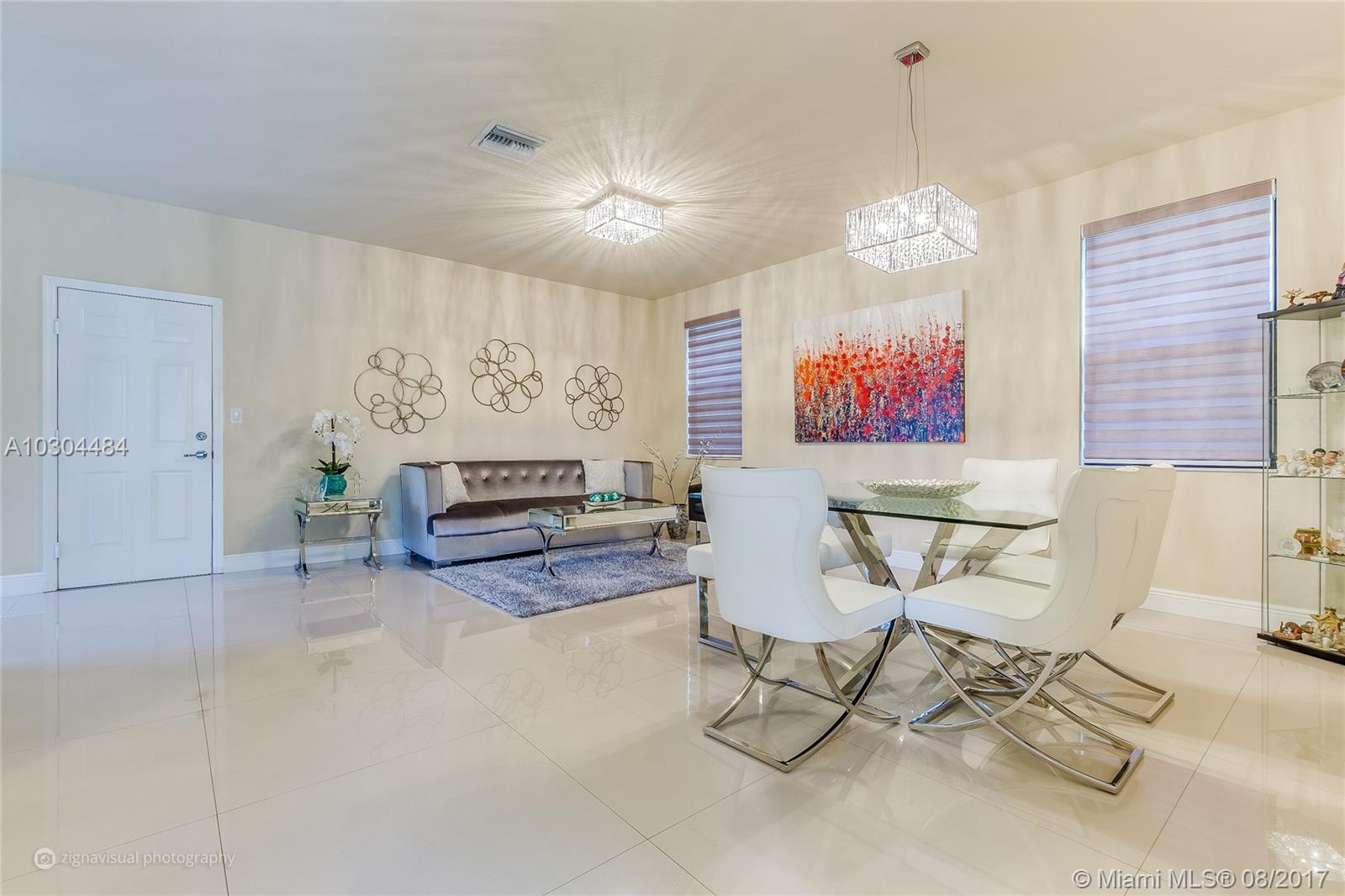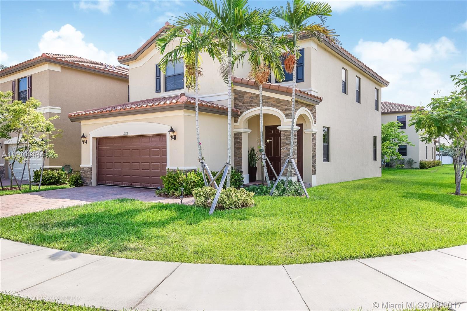 Well-appointed, meticulously maintained home located in Aragon. Featuring gleaming over-sized porcelain tile flooring on the first floor, stainless steel appliances, two-car garage, and second-floor laundry room. Expansive master bedroom suite complete with walk-in closets, master bath with over-sized shower, roman tub and double sinks. This corner lot home is one of a few ideally located just steps from guest parking and club house amenities including resort-style pool and fitness center. Set within a family-oriented community complete with a playground, this two-story home in north Hialeah is located near I-75 and FL Turnpike, just minutes from Broward county, Hialeah Gardens, Miami Lakes and Doral.
