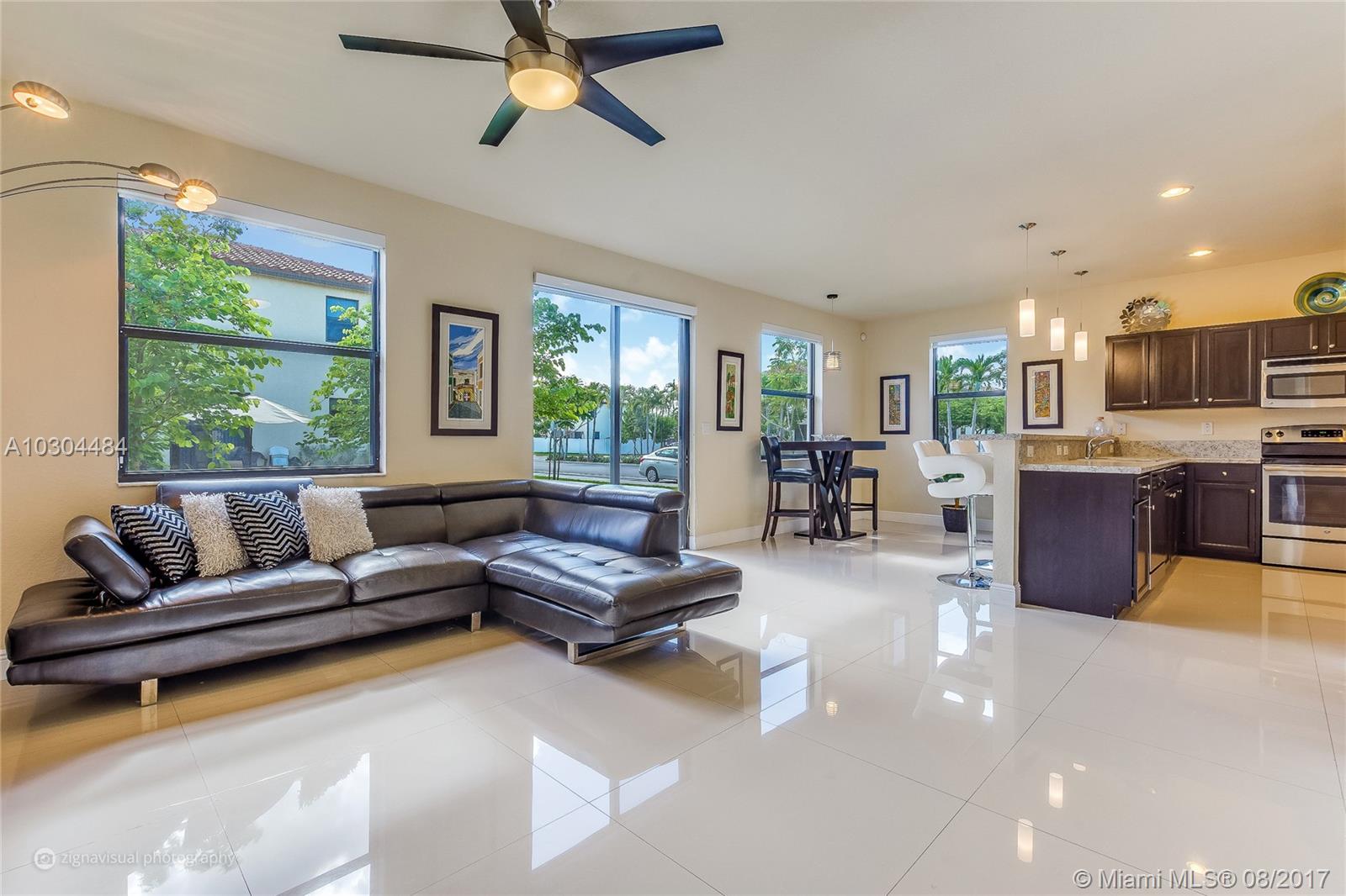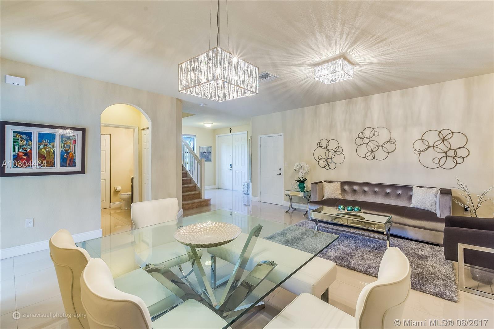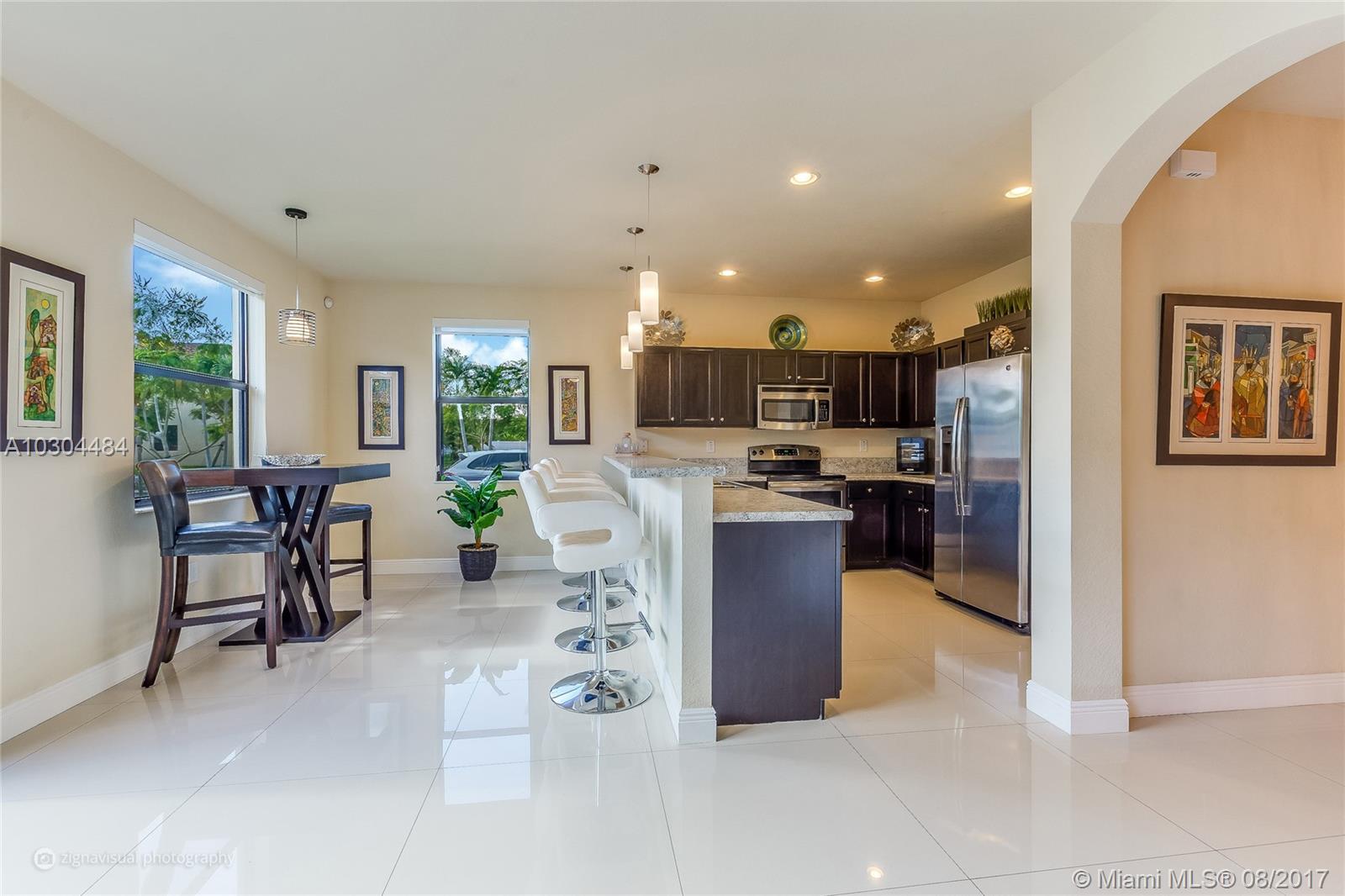 Well-appointed, meticulously maintained home located in Aragon. Featuring gleaming over-sized porcelain tile flooring on the first floor, stainless steel appliances, two-car garage, and second-floor laundry room. Expansive master bedroom suite complete with walk-in closets, master bath with over-sized shower, roman tub and double sinks. This corner lot home is one of a few ideally located just steps from guest parking and club house amenities including resort-style pool and fitness center. Set within a family-oriented community complete with a playground, this two-story home in north Hialeah is located near I-75 and FL Turnpike, just minutes from Broward county, Hialeah Gardens, Miami Lakes and Doral.