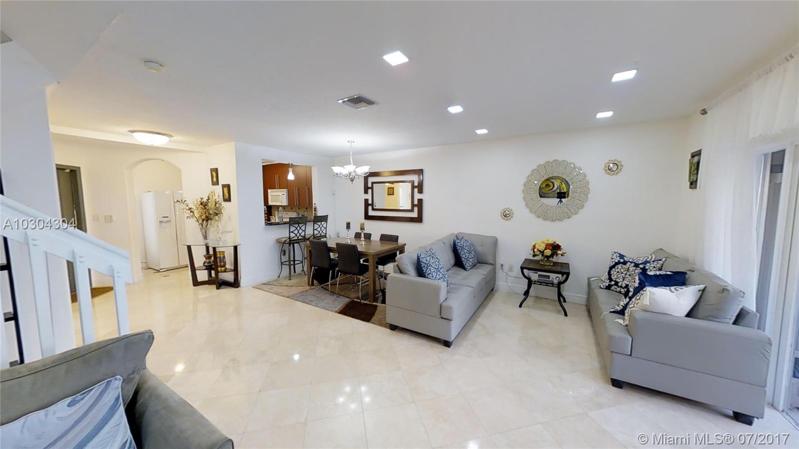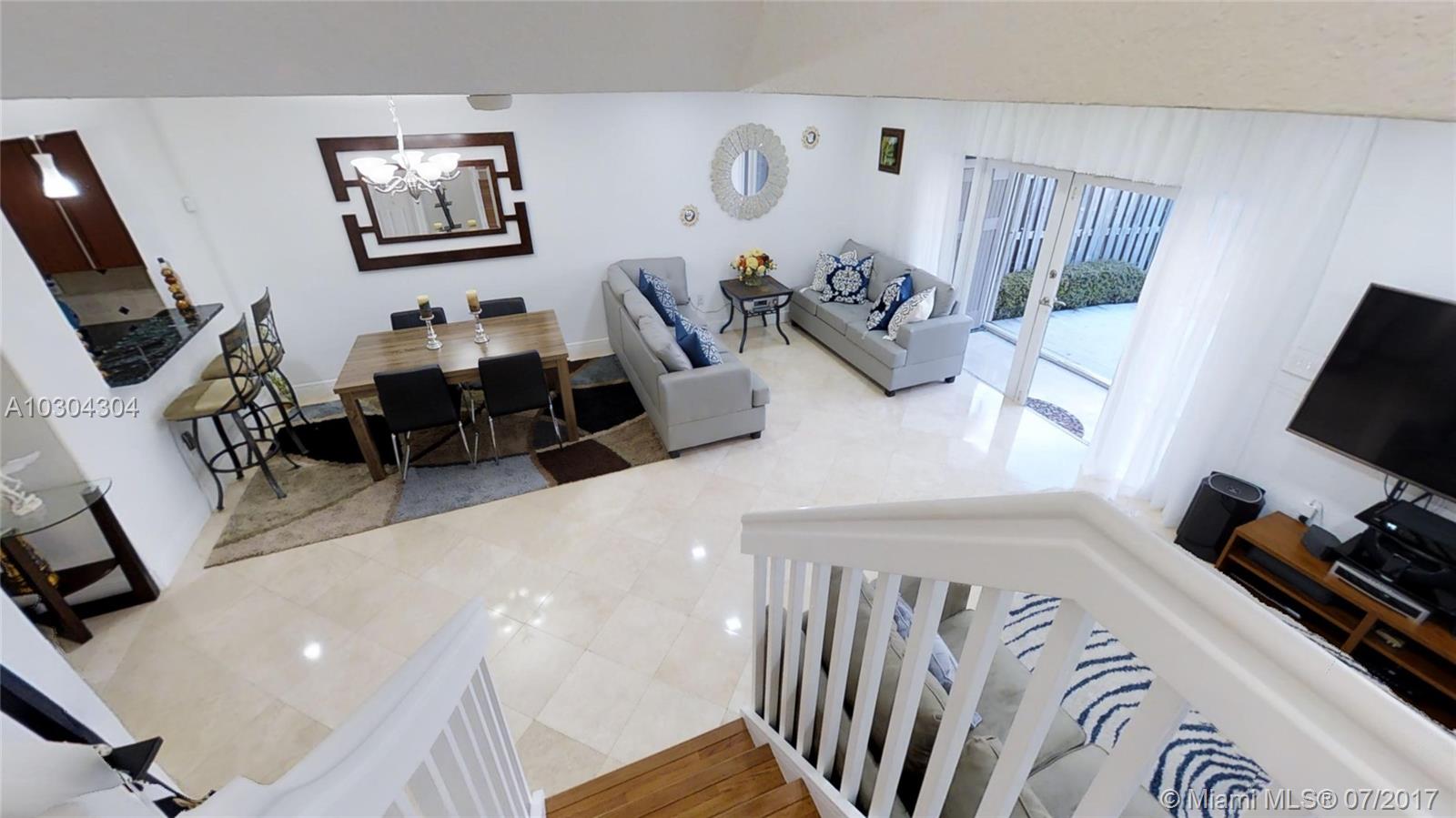 Home sweet home!!! Impeccable Townhouse with 3 Bed 2.5 Bath, everything has been upgraded, modern kitchen with granite countertops, hurricanes accordion shutters, gorgeous landscaping, marble floor in 1st floor and wood laminated in 2nd-floor, pavers tile in patio and french doors. One (1) Bedroom on the 1st level, and two (2) Bedrooms upstairs. Excellent location, gated community " Dimensions at Doral" only 90 townhouses and low association fee ($133 per month)