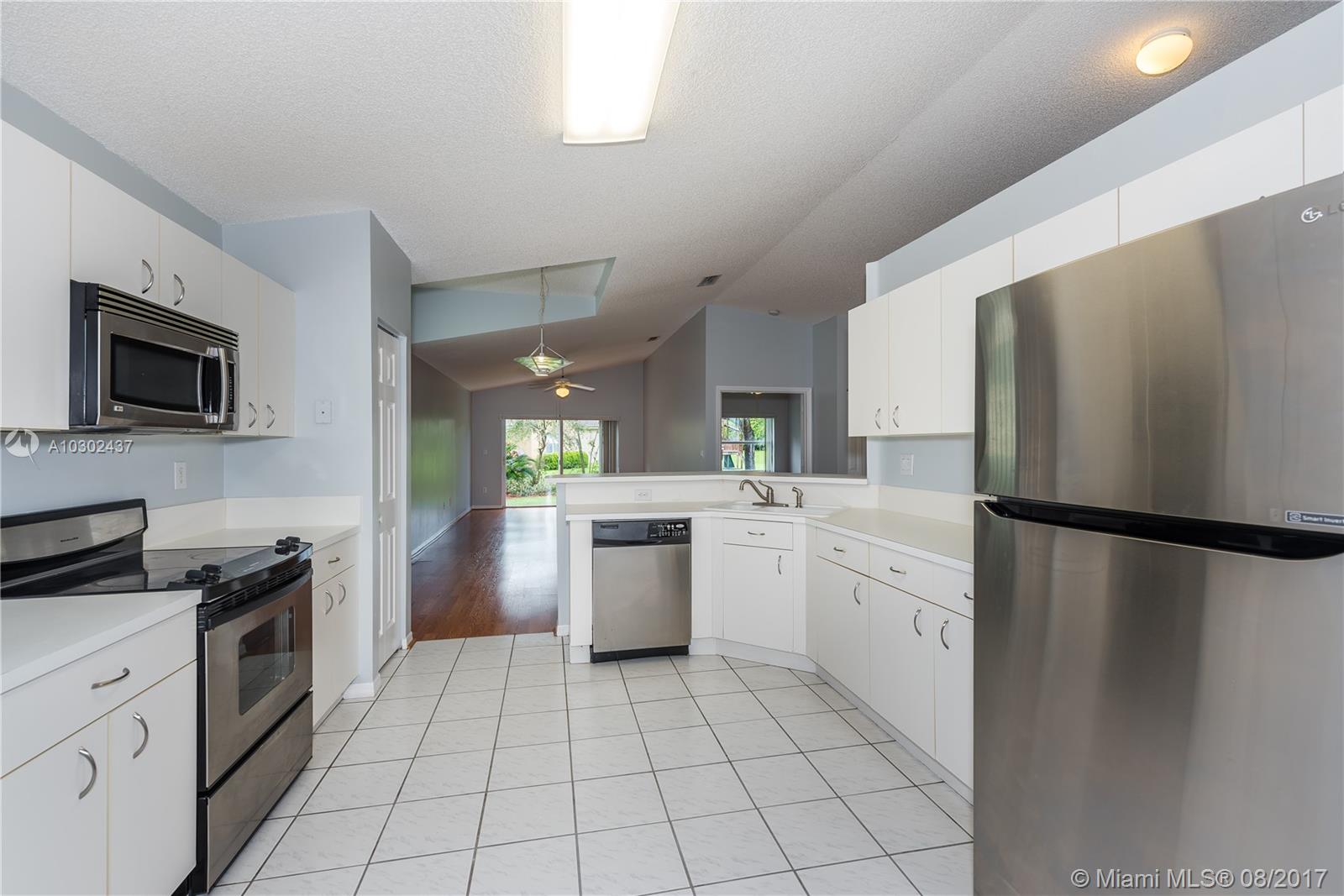 Stylish Contemporary 1 story home located in the much sought-after community of Pembroke Isles. This cozy home features an open floorplan, vaulted ceilings, large kitchen with a breakfast nook, newer stainless-steel appliances, walk-in closet, wood laminate flooring throughout, freshly painted and more. Located on an oversized lot on a cul-de-sac. HOA includes- Lawn maint., basic cable, ADT security, 24 roaming security, clubhouse, 4 pools, tennis, soccer, basketball, and more. Resort style living with excellent A rated schools.