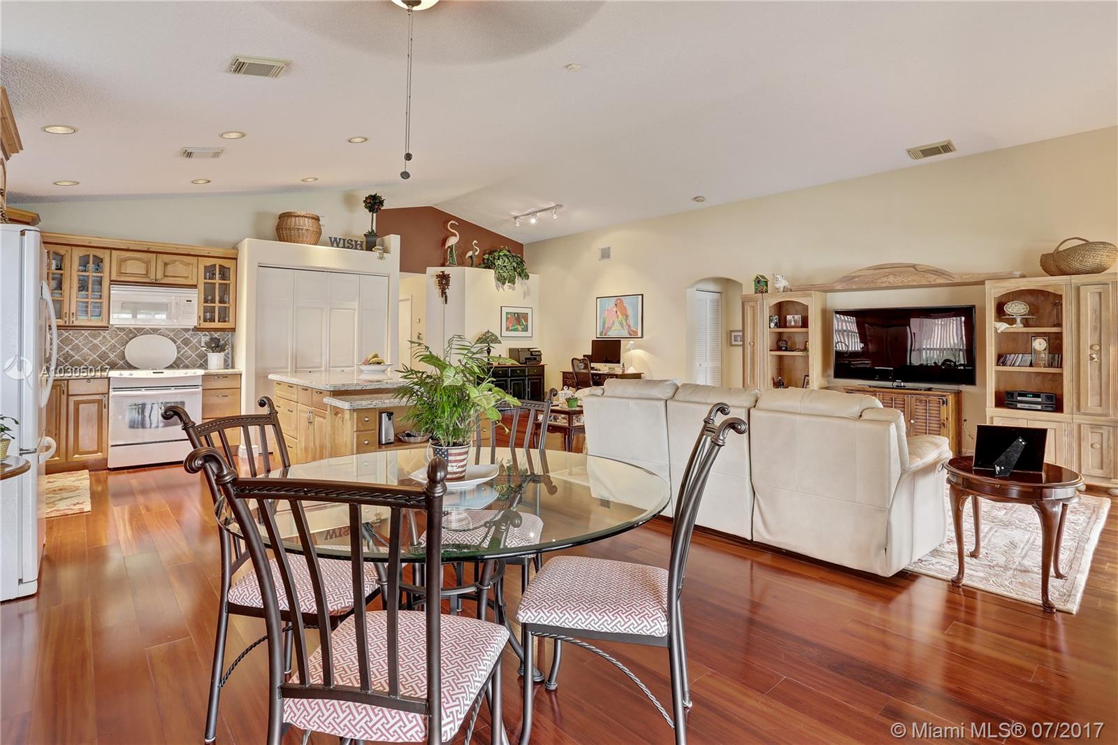 Beautiful home sitting on a corner lot. Conveniently located around the corner from the Residents gate. This home feature an open floor plan , remodeled kitchen with a huge island,double pantry, cabinets galore, large eat in kitchen, vaulted ceilings, split bedroom plan. Accordion shutters throughout, beautiful Brazilian Cherry wood floors in the living area. Master bedroom with high ceilings, large walk-in closet. Covered patio outside with stamped concrete, plenty of room for a pool. This home is meticulous!